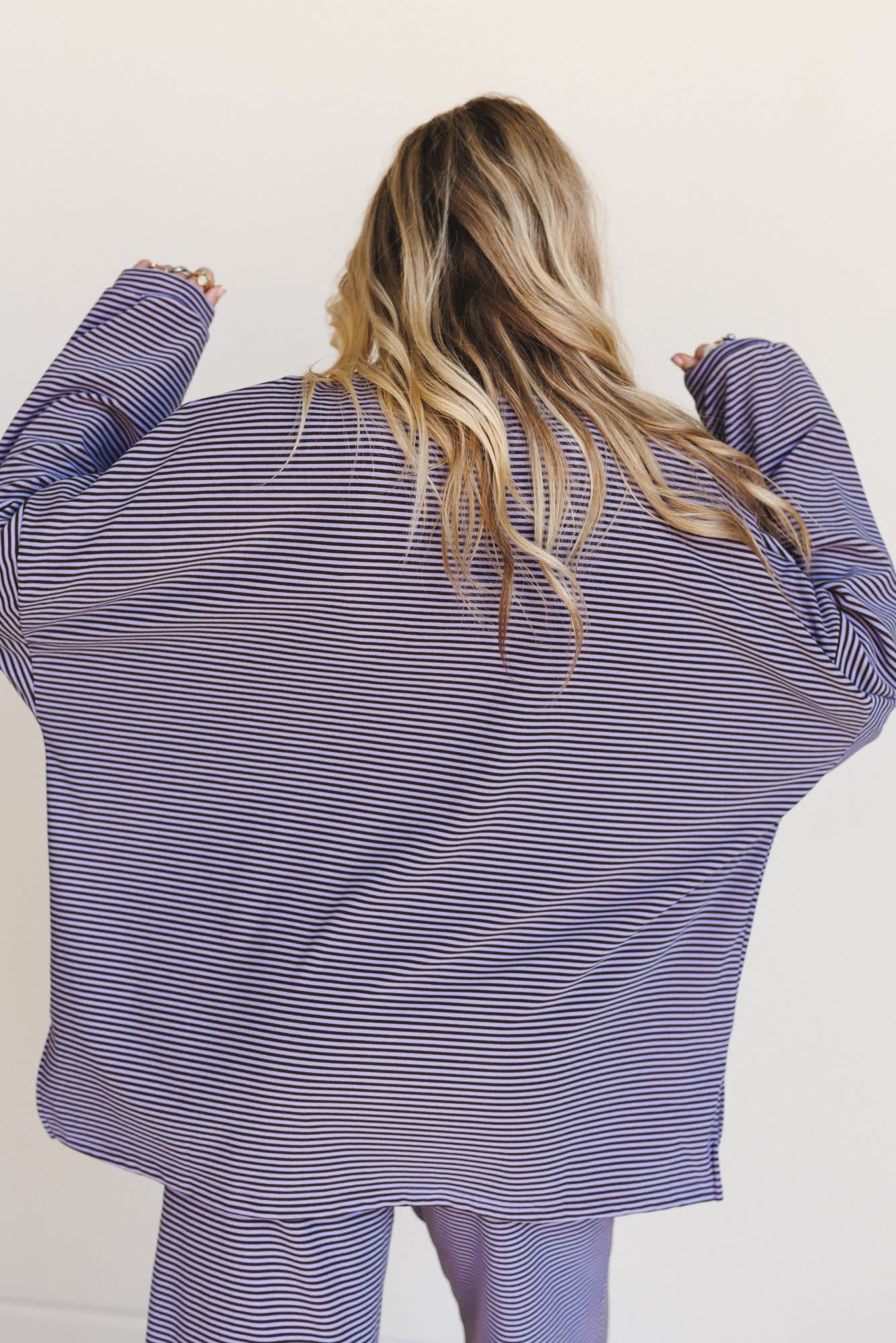 • Ultra-soft knit with a subtle lavender stripe pattern