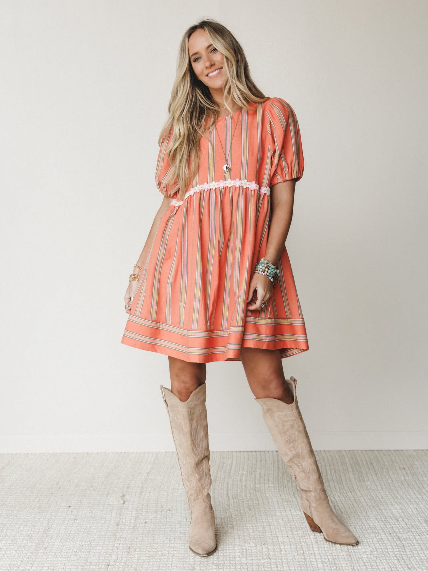 When you're wondering what to wear to a summer festival or weekend market, this striped babydoll dress delivers that perfect free-spirited style with effortless charm. The Solar Flare Dress captures authentic bohemian fashion with its relaxed silhouette and vintage-inspired details.