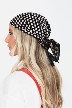 This classic bandana-style scarf looks amazing with a black maxi dress and boots.