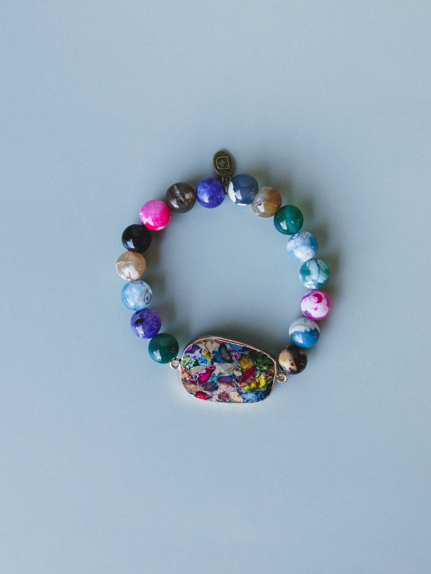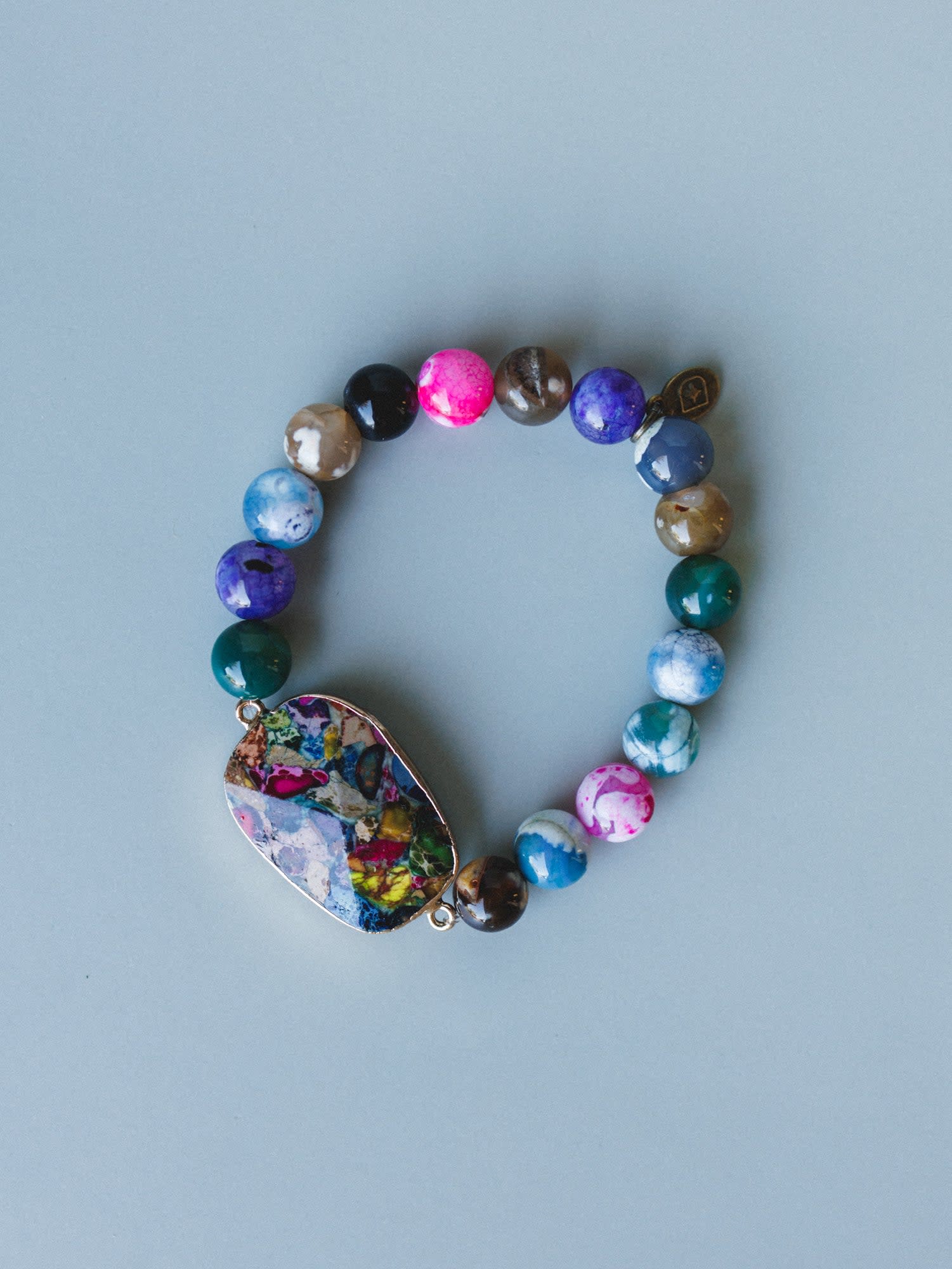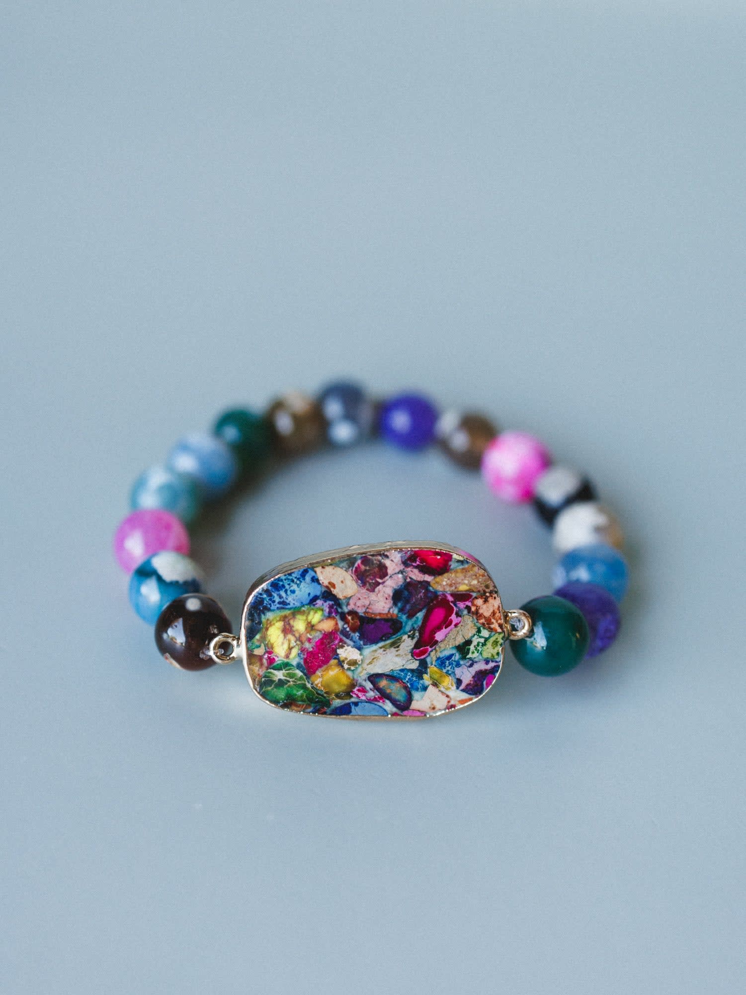 A little bold, a little playful—this bracelet is all about color and personality. With its mix of vibrant beads and a standout stone centerpiece, it’s the perfect piece to brighten up any stack.