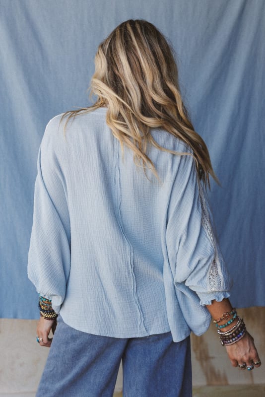 Pair this poncho-like boho top with flared jeans for a retro-inspired look.