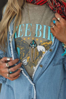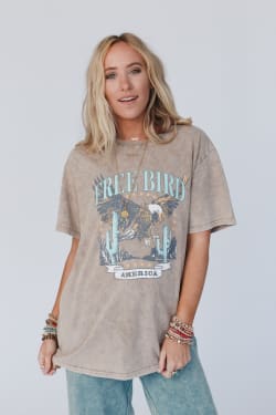 • Fly Free Graphic Tee: A washed vintage olive tee featuring a soaring eagle, desert cacti, and "Free Bird" lettering—this one's a go-to for effortless cool.