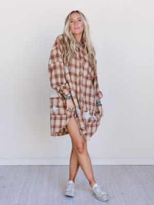 - Soft, oversized flannel silhouette for a relaxed, cozy fit