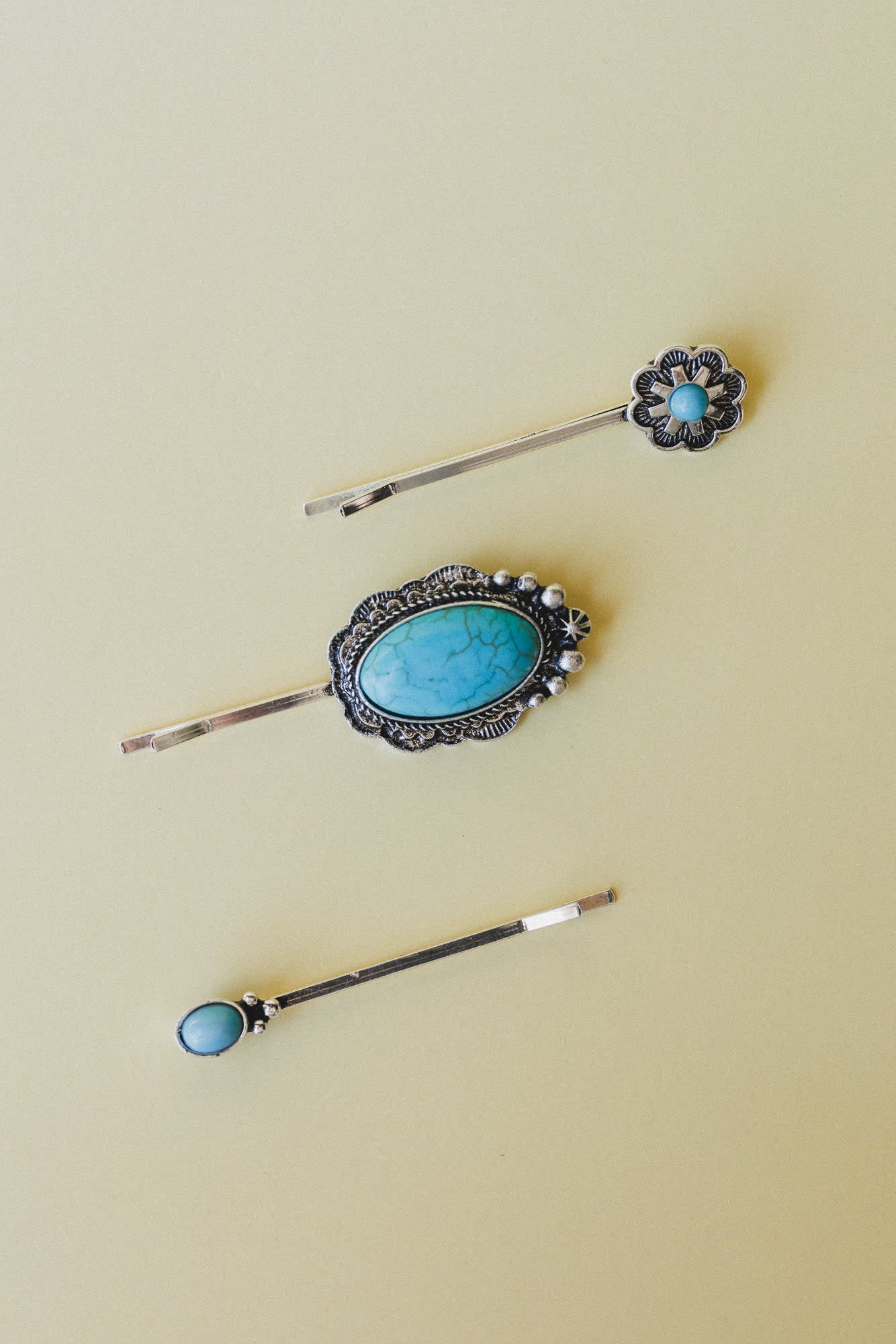 Add a subtle pop of turquoise to any look with these adorable hair pins.
