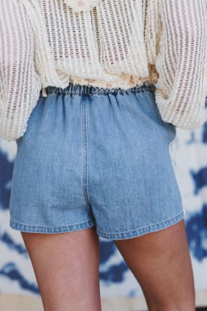 - SMALL: Waist: 24“, Stretched Waist: 26“, Rise: 12.5“, Inseam: 2“, Length: 12“, Hip: 38“
