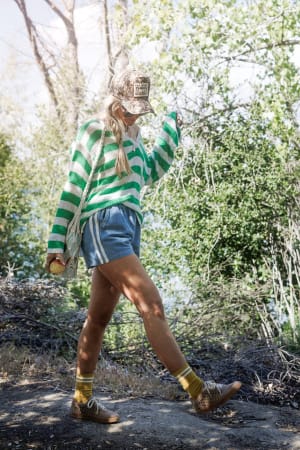 These striped shorts pair perfectly with tanks and sneakers for a summer camp retro vibe.