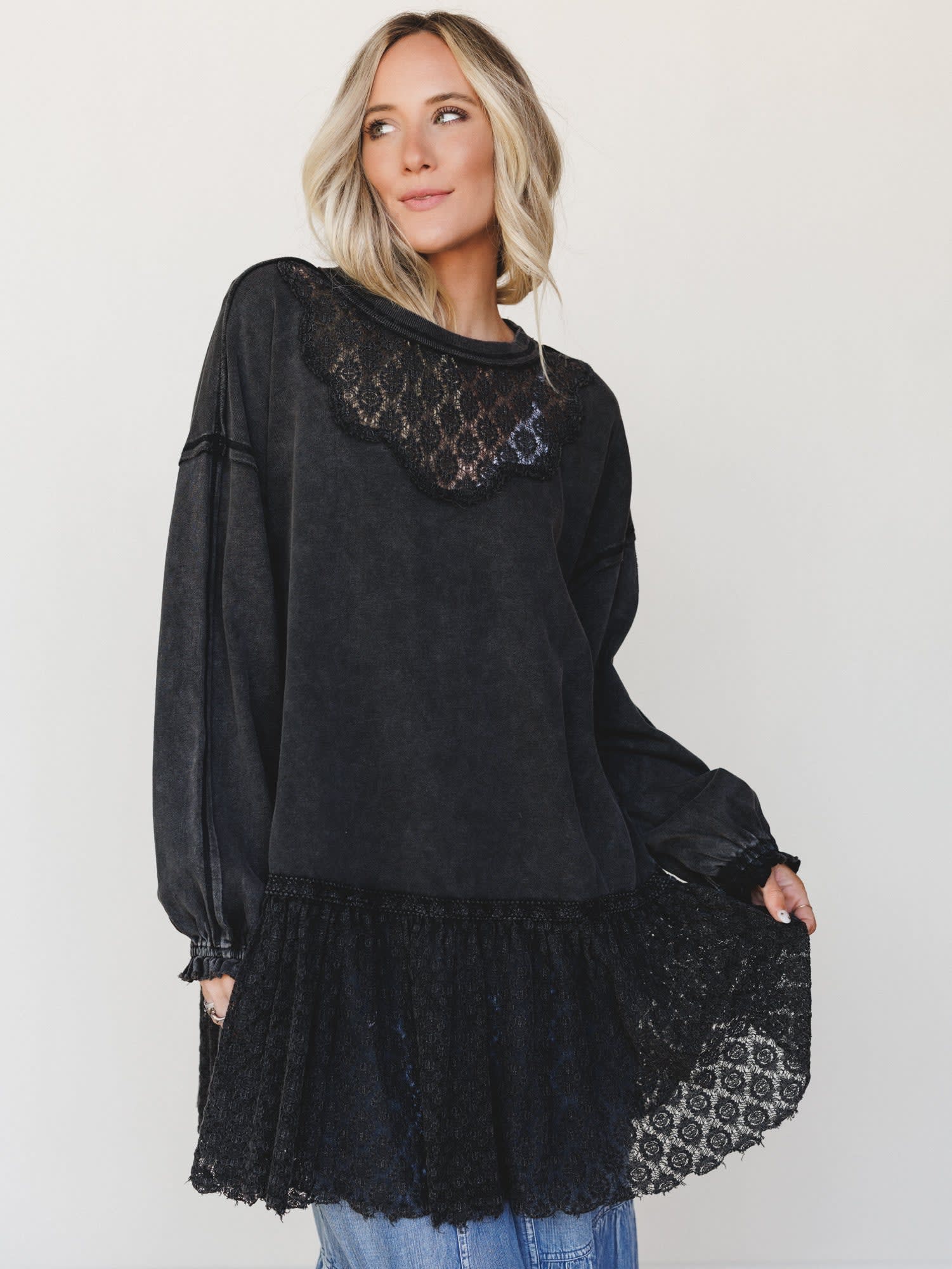 What happens when your coziest sweatshirt meets your most romantic lace top — this is that, and it's everything your boho wardrobe essentials list has been missing.
