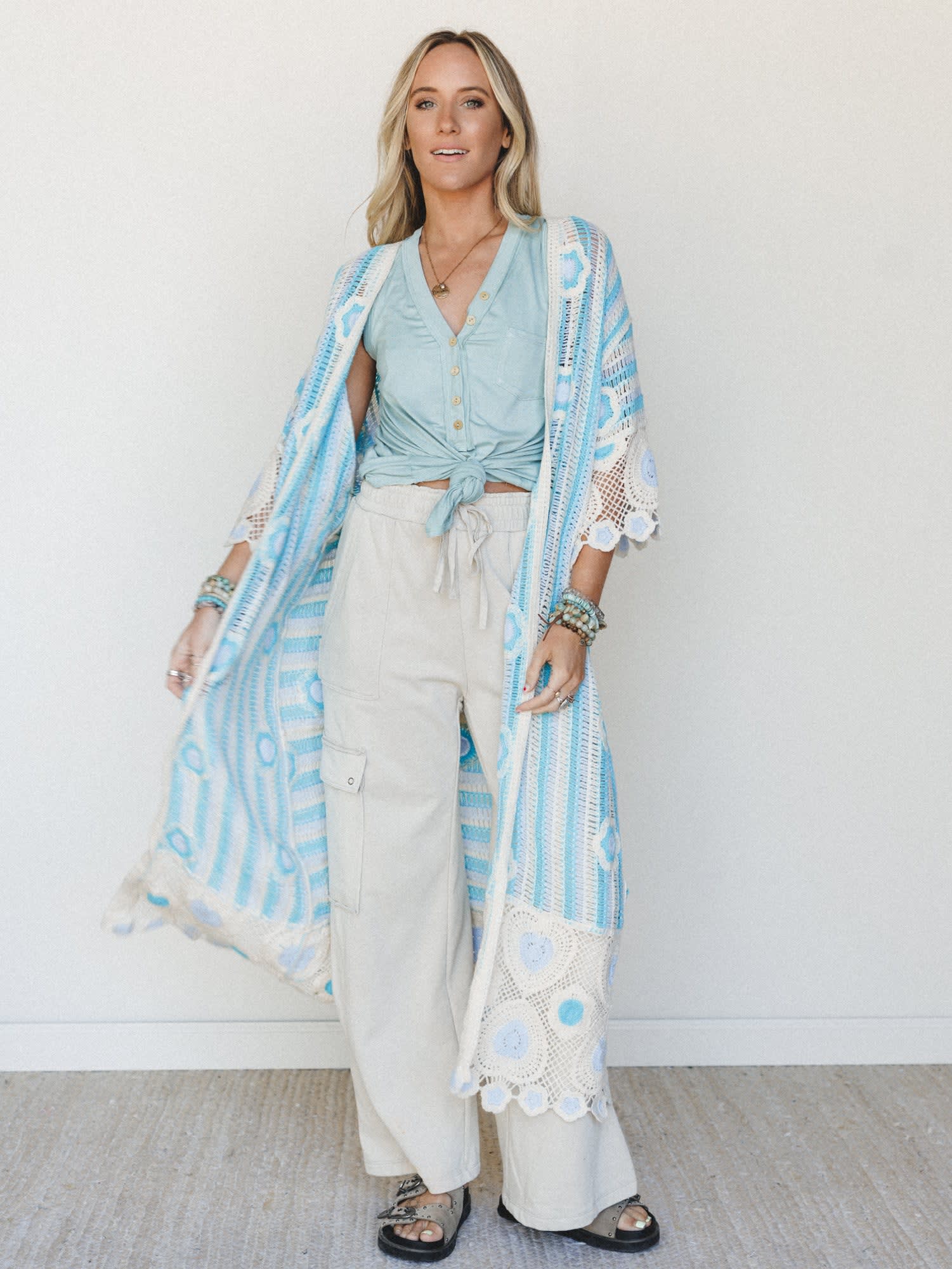 - The duster doubles as a boho kimono for poolside cover-ups or festival layering over bralettes and denim.