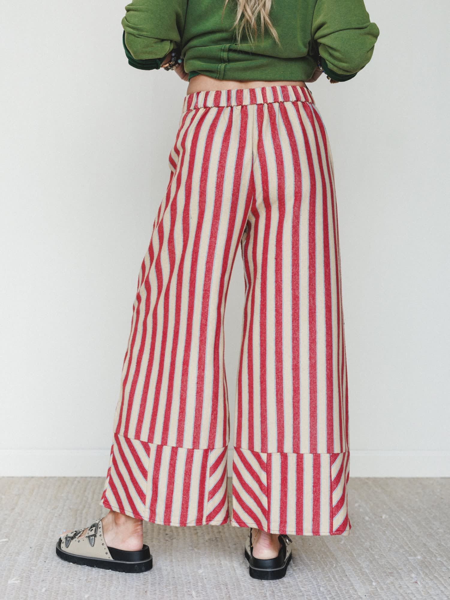 • Eye-catching red and cream vertical stripes with contrast stripe hem