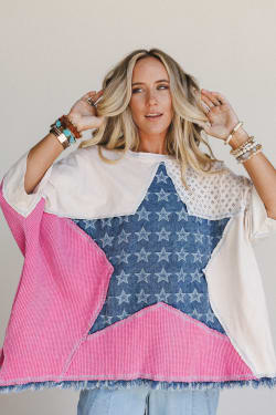 Big star energy, boho attitude. The Star Riot Top is a bold patchwork dream that brings texture, color, and just the right amount of edge to your look. With its oversized silhouette and wild mix of fabrics, this top was made for those who like to do their own thing — and look amazing while doing it.