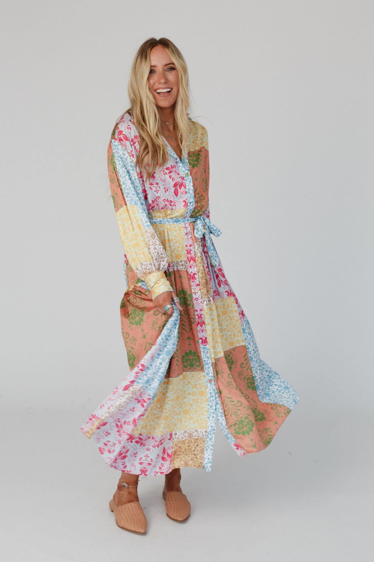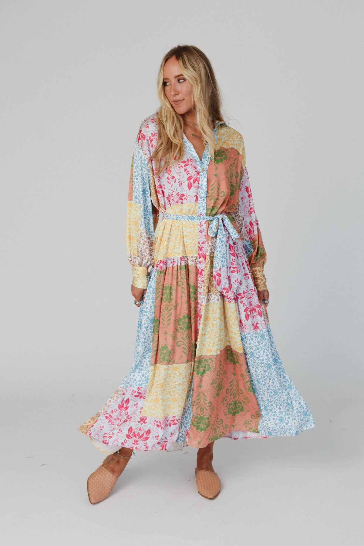 • Lightweight, flowy, patchwork-inspired, mixed print throughout