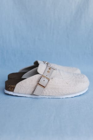 - Easy slip-on mule design with a relaxed boho vibe