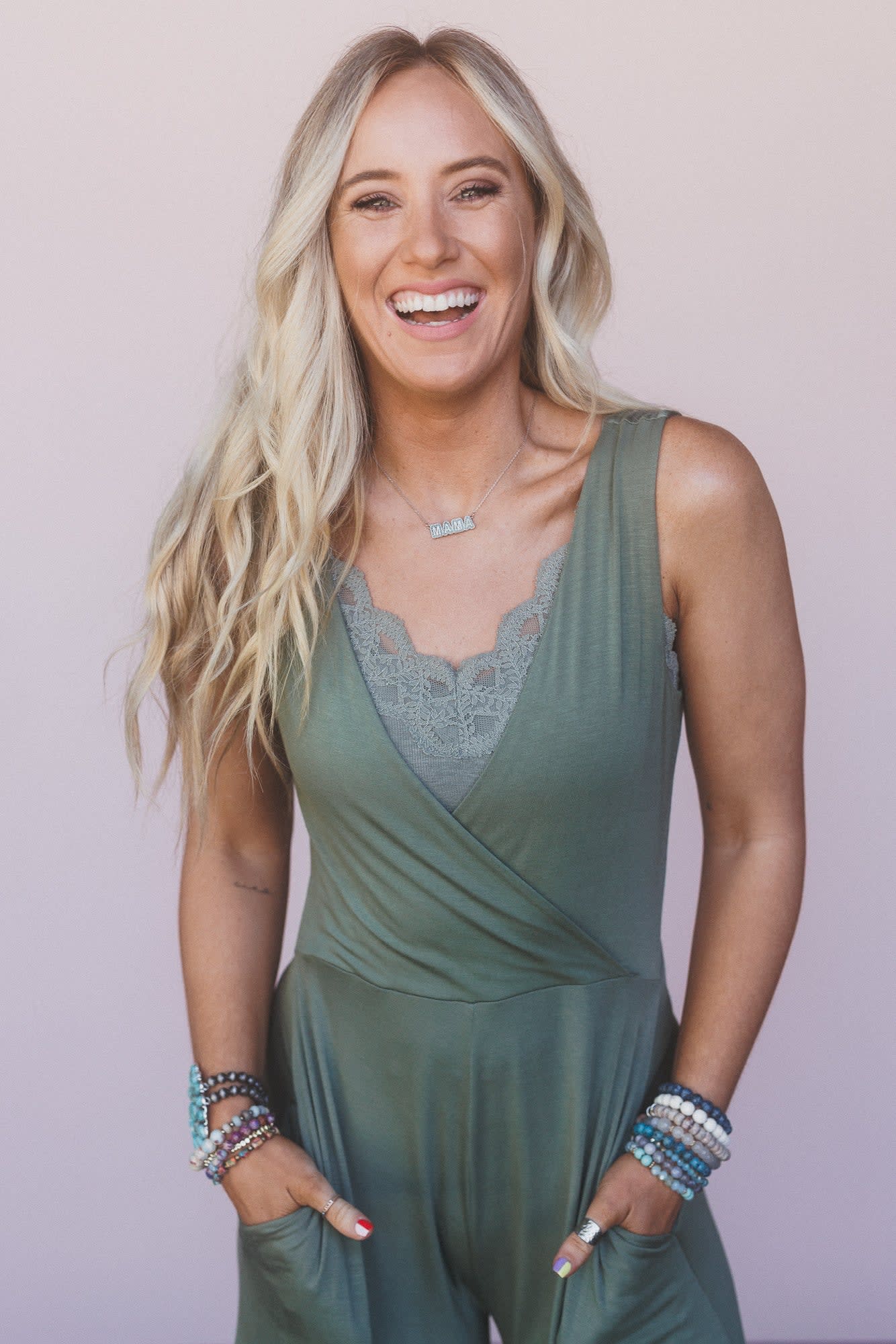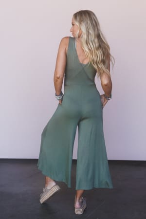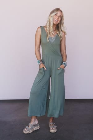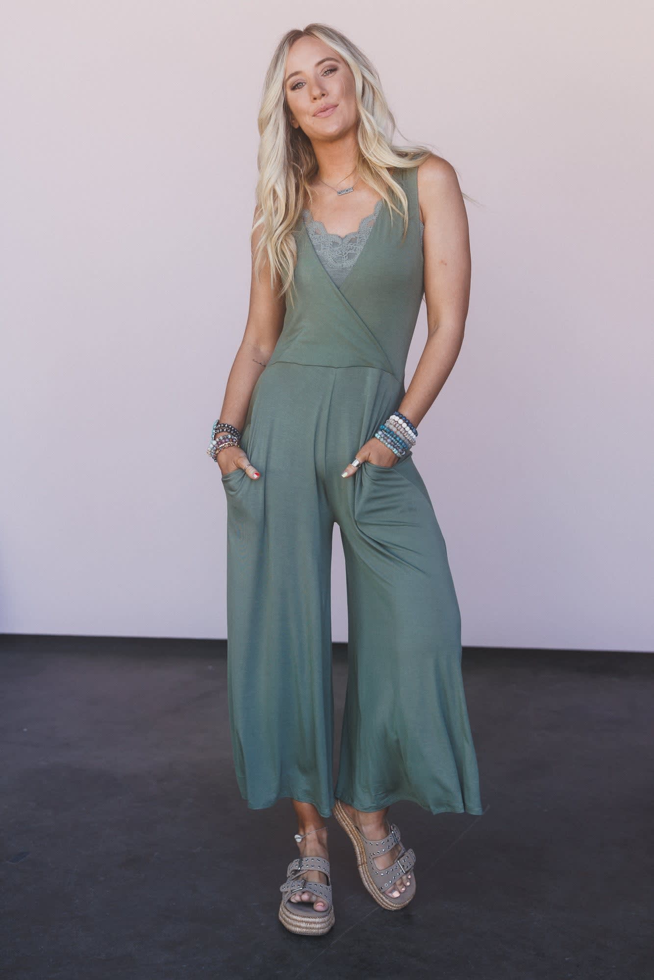 Layer this sleek jumpsuit with a lace bralette and cami for a cool, casual look.