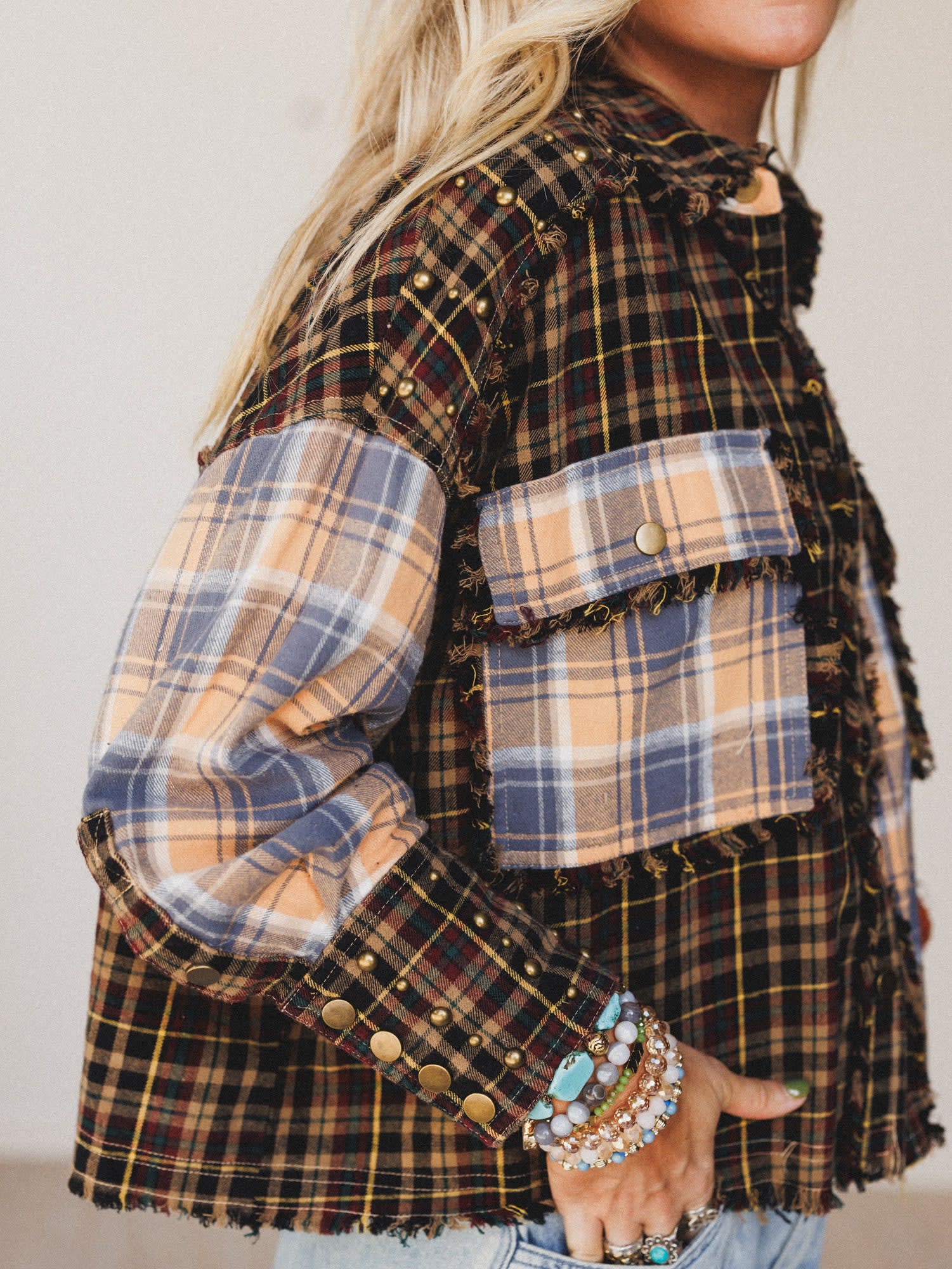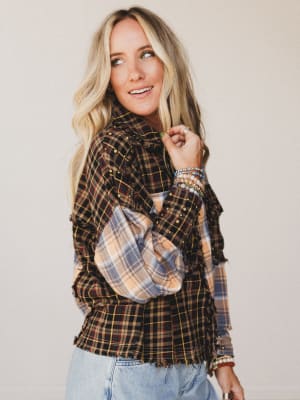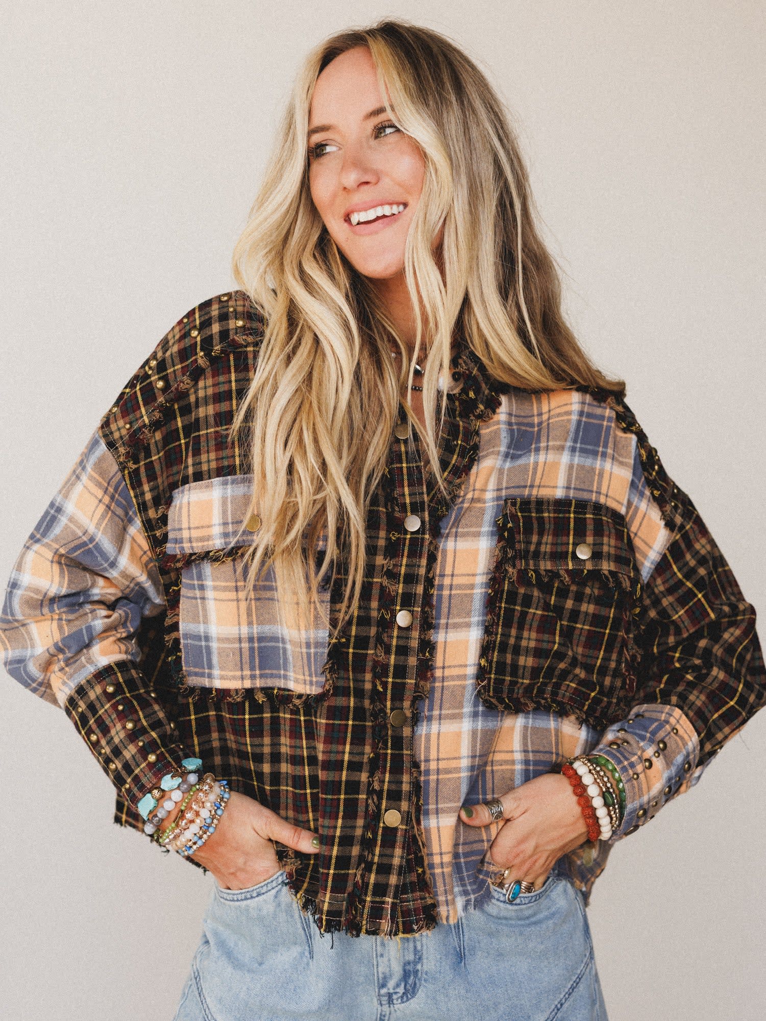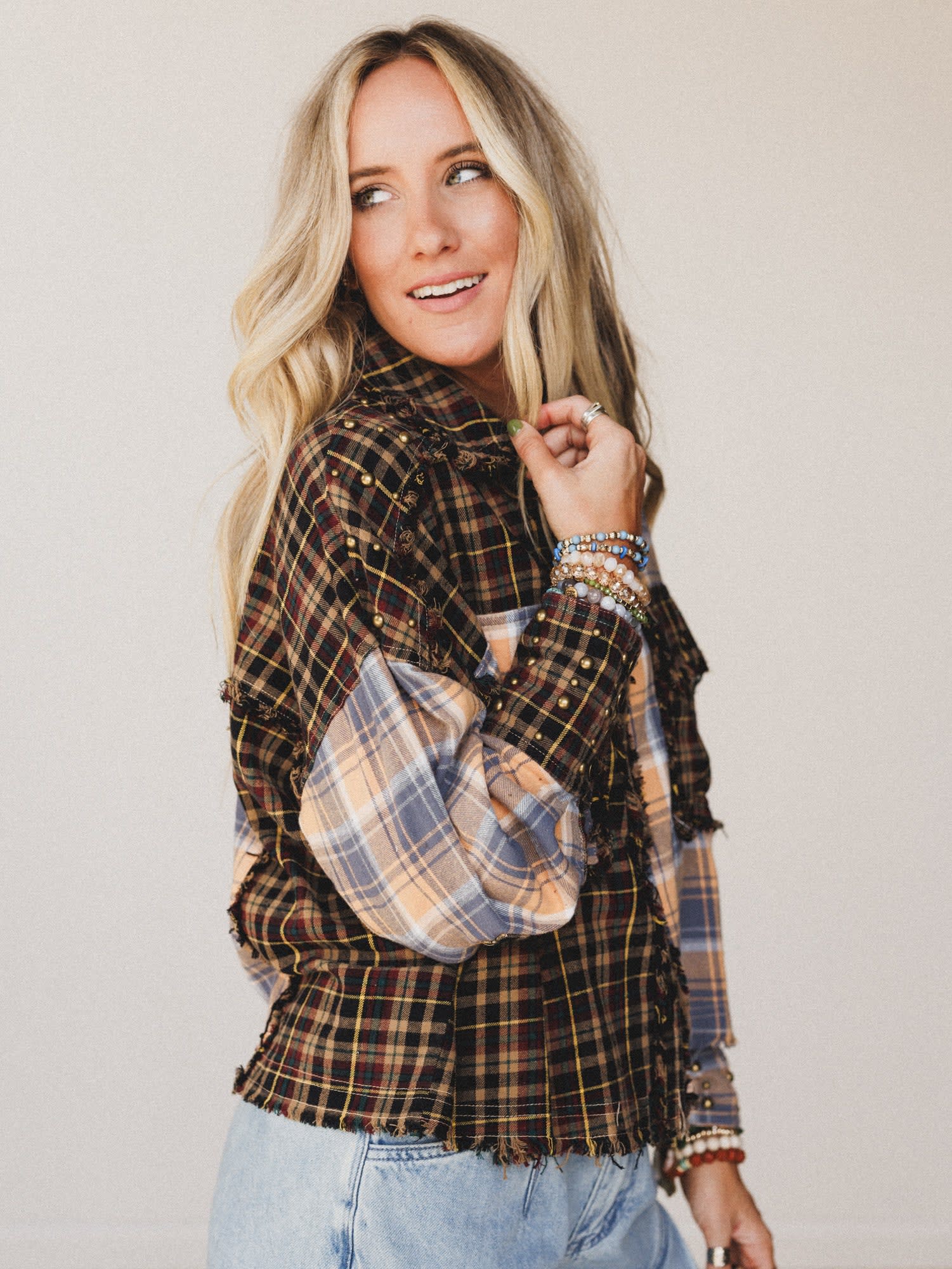 Bring on the bold — the Still West Snap Button Top is your new go-to for mixing grit with glam. With rich plaid patchwork and just the right amount of edge, this top tells a story of vintage soul and desert dreams.