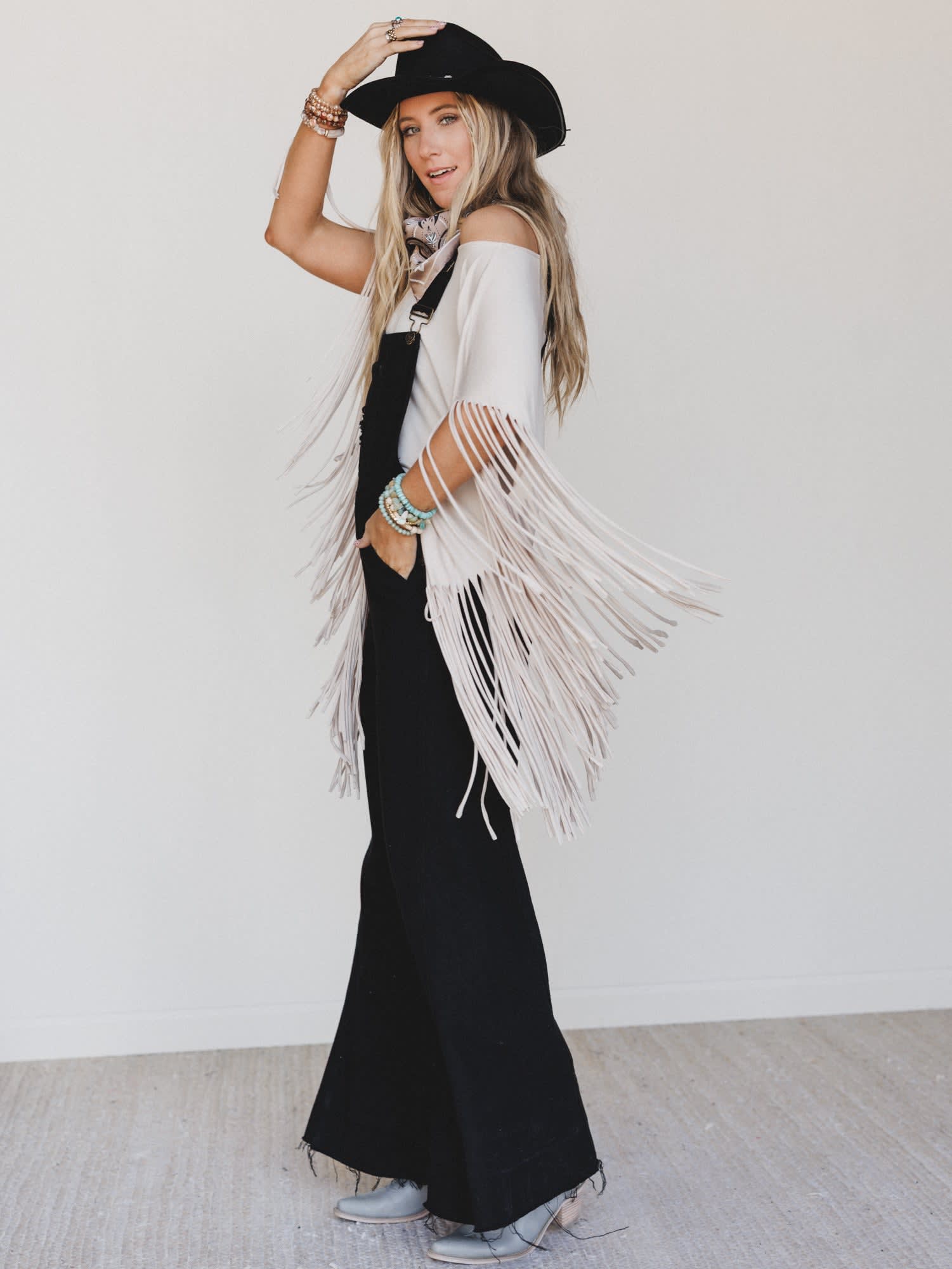 • Soft neutral fringe top – The Nest Showstopper Fringe Top features dramatic arm fringe and a relaxed, flowy fit for that statement-making boho vibe.