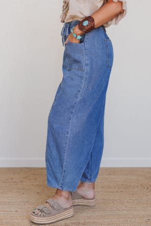 Relaxed, stylish, and endlessly wearable—these drawstring barrel jeans are a casual boho essential.