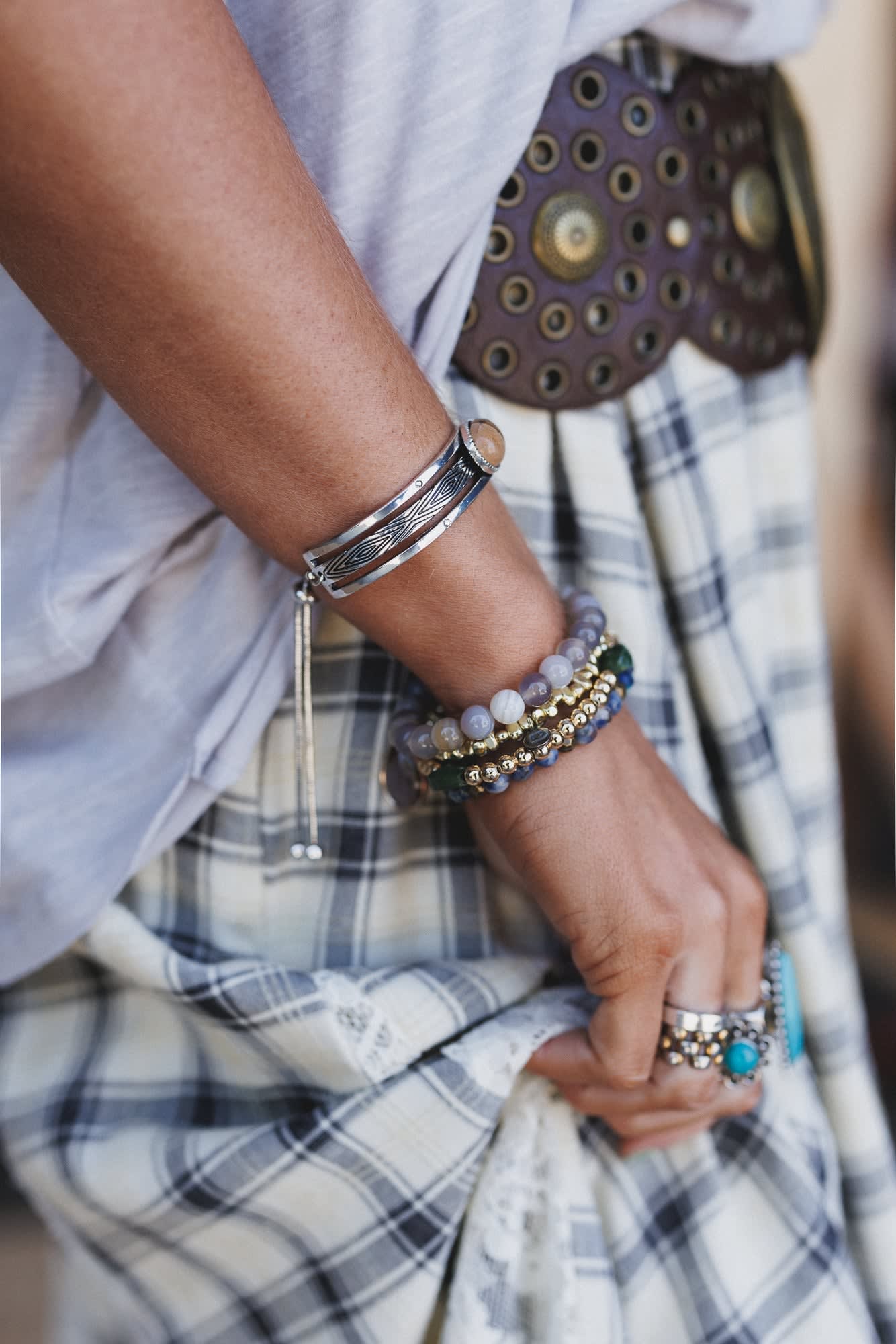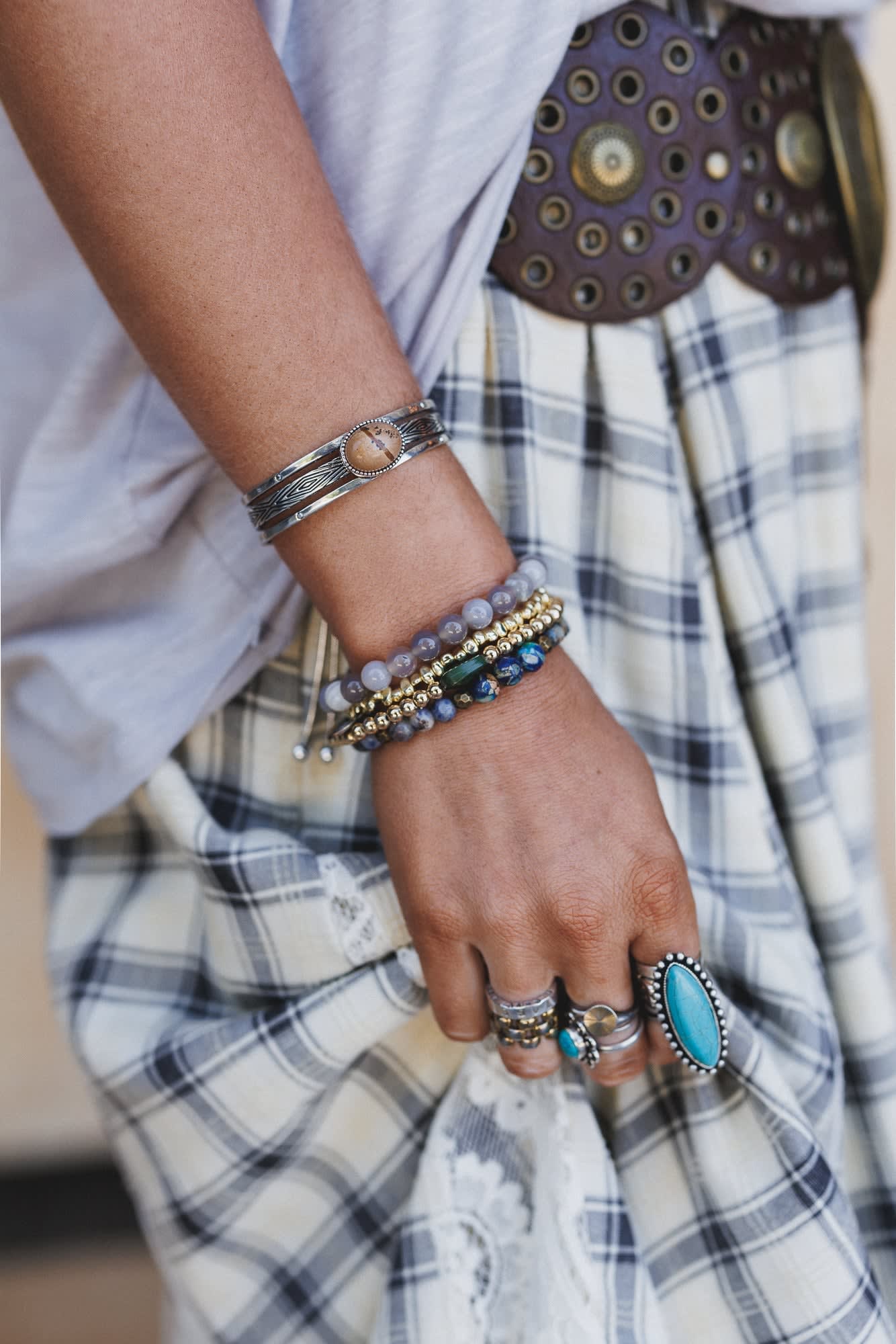 This ornate bracelet goes with literally anything from graphic tees to maxi dresses.Β