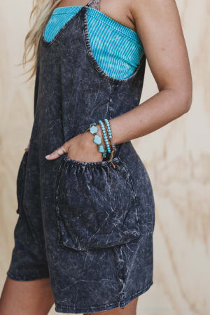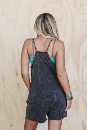 Laid-back yet totally statement-making, this washed black romper is your shortcut to summer ease. Toss it on with a bandeau or tee and hit the road with your favorite playlist.