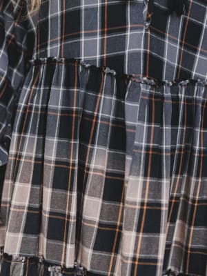 • Features contrasting tiers of soft plaid in warm harvest tones