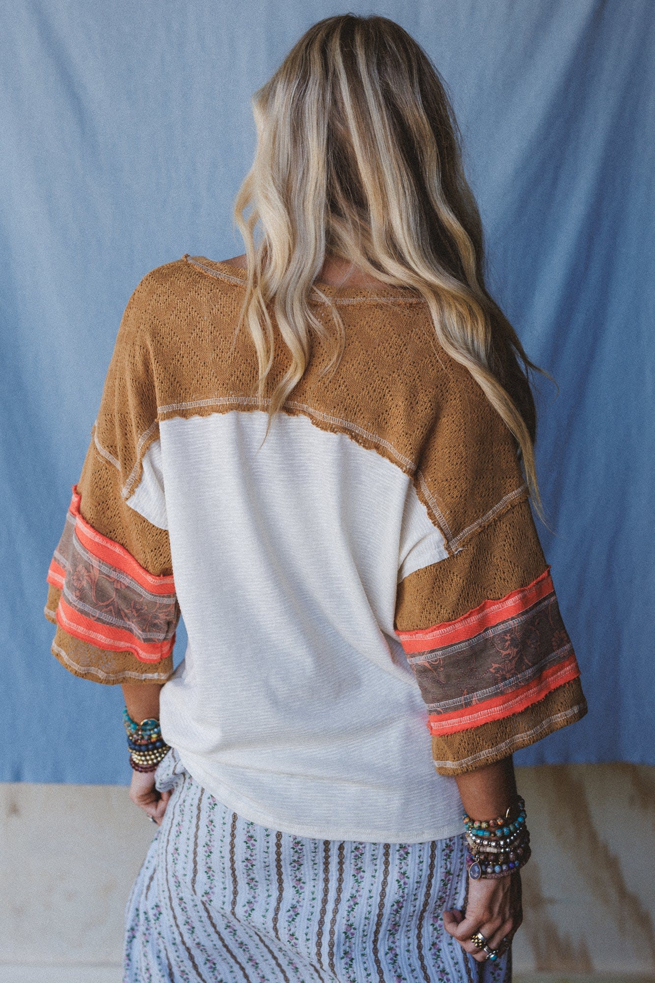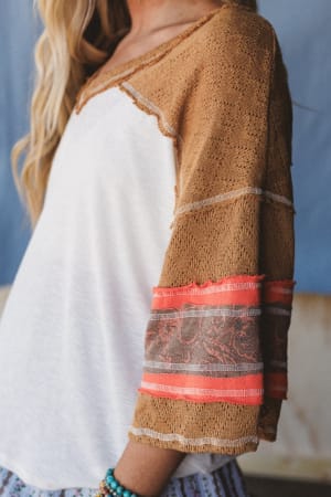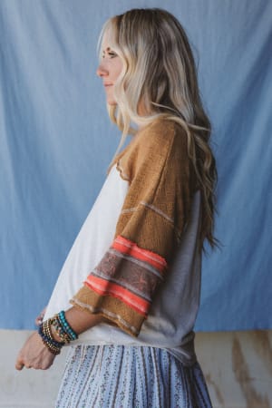 This sporty boho top looks great with wide leg pants and sandals.