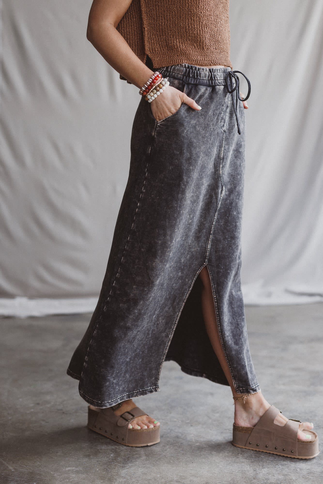 Sunfade Front Slit Maxi Skirt Color