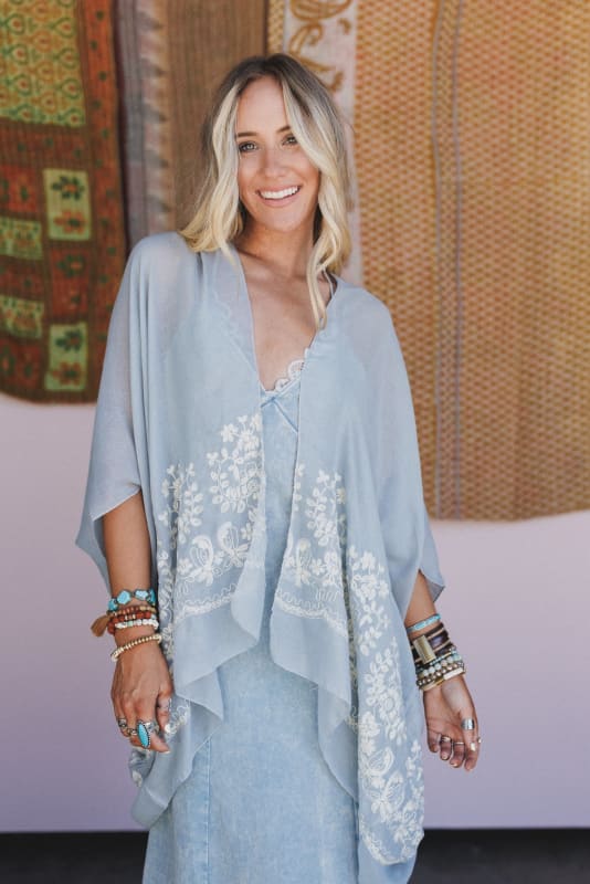 Pair this light and flowy kimono with a brami and jeans for an easy elevated casual look.