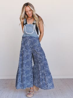 Playful, flowy, and effortlessly boho—the Sunset Paisley Tiered Overalls are your new go-to for carefree days. Featuring a lightweight bandana-inspired print and charming lace-trimmed denim bib, this one-piece blends whimsy with comfort in the best way.