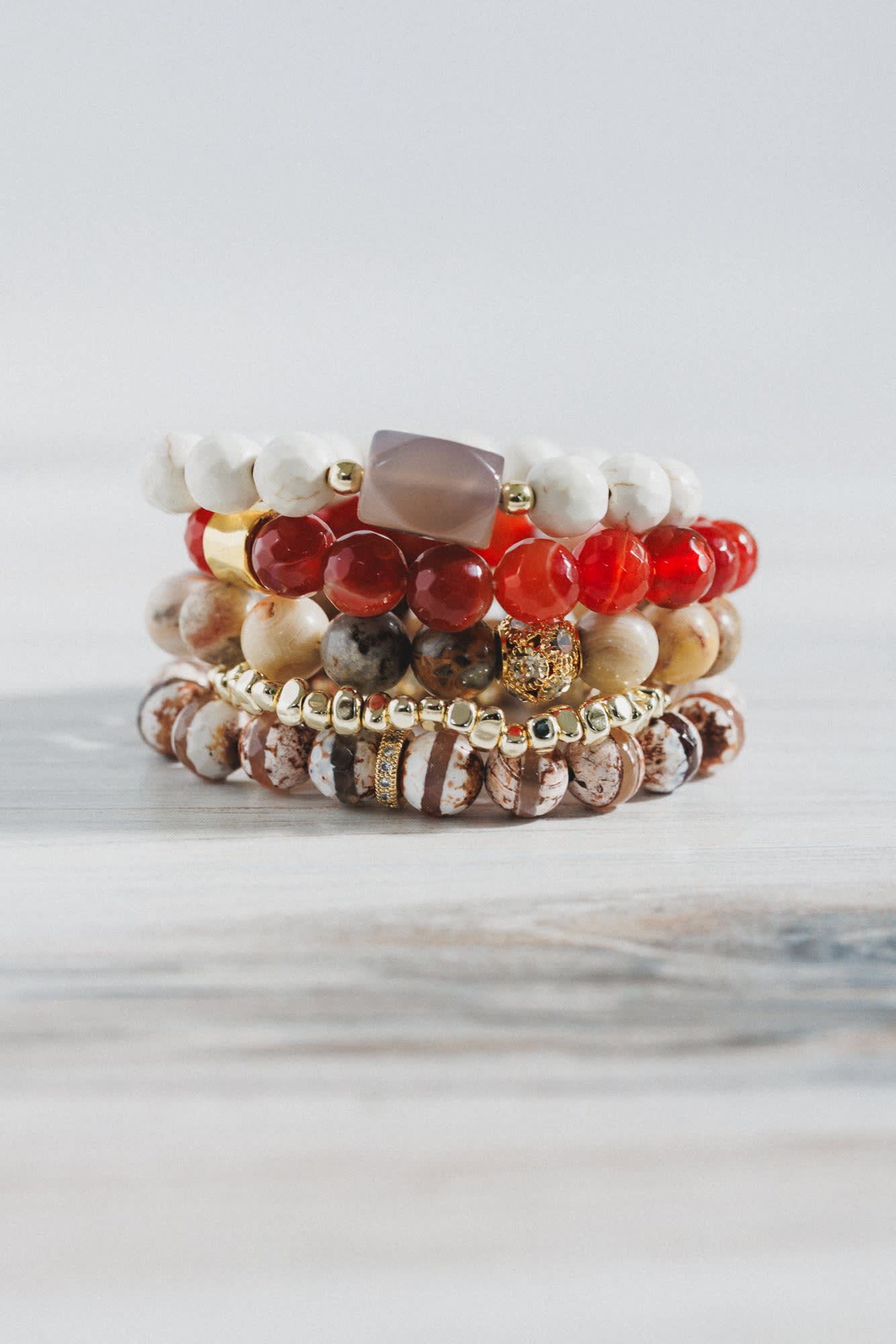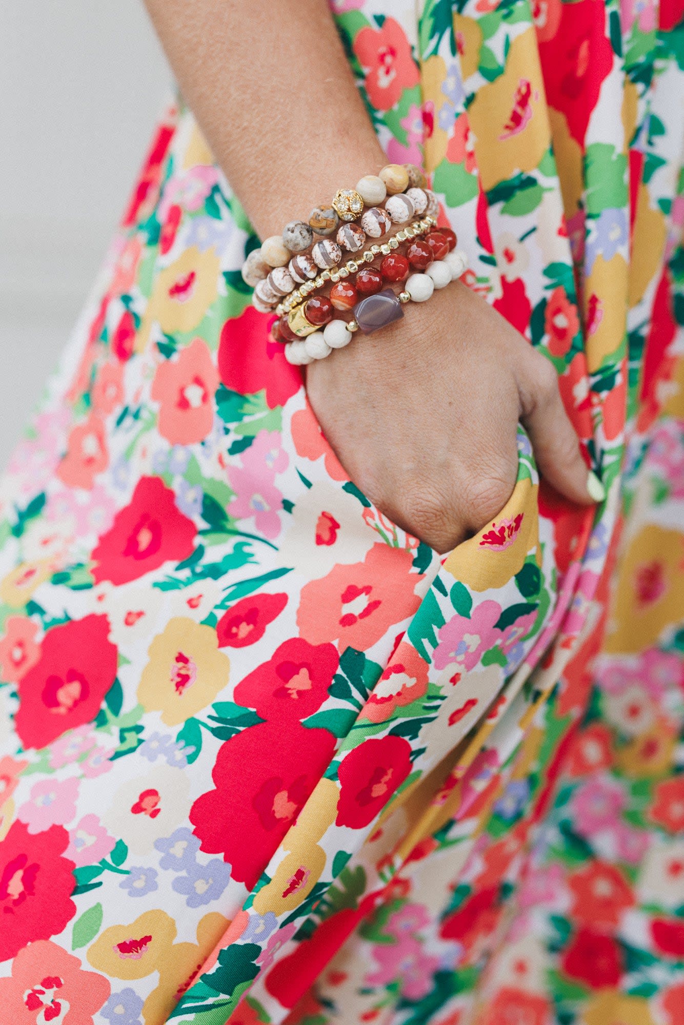 For a burst of color, add this set of multi-beaded bracelets to any everyday boho look.