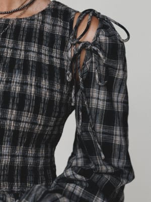 - Shoulder tie details and cutouts for a fun, flirty edge
