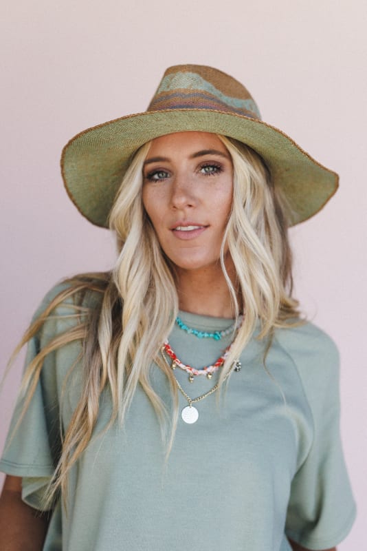This raffia hat is a summer vacation must-have, featuring a striped pattern that turns all the heads.