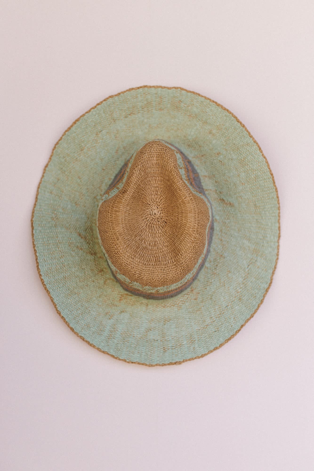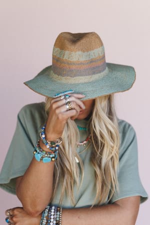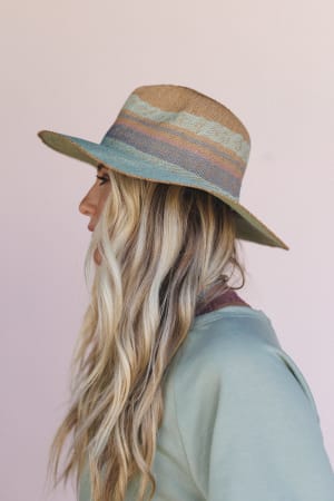 This raffia hat is a summer vacation must-have, featuring a striped pattern that turns all the heads.