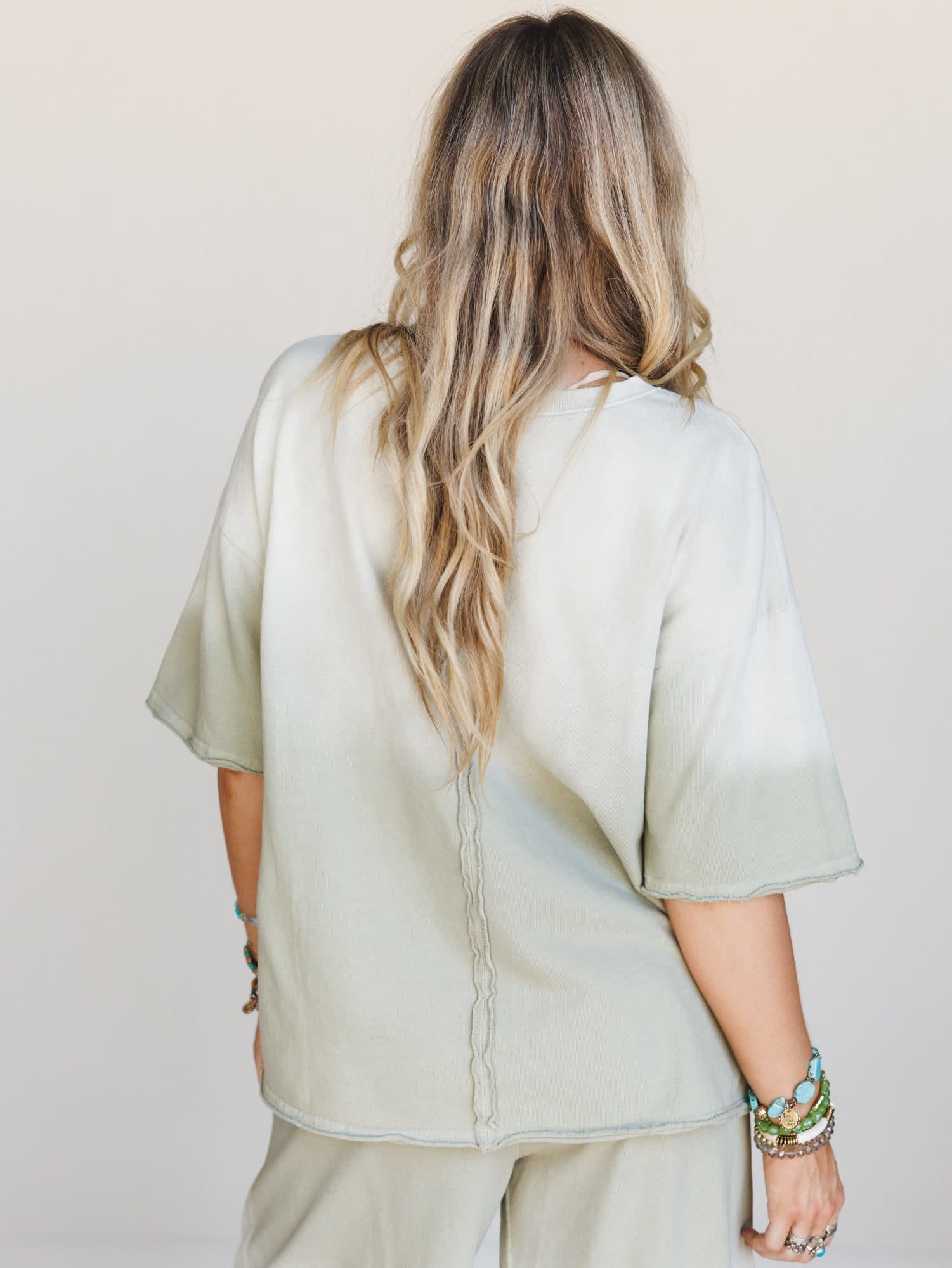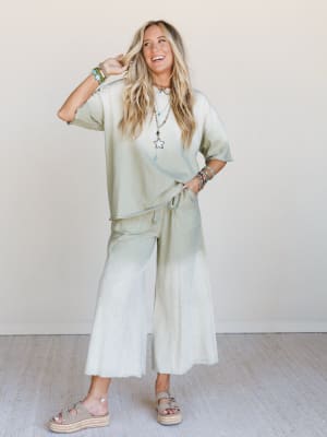 Pair this ombre boho top with flowy wide leg pants for a comfy boho chic look.