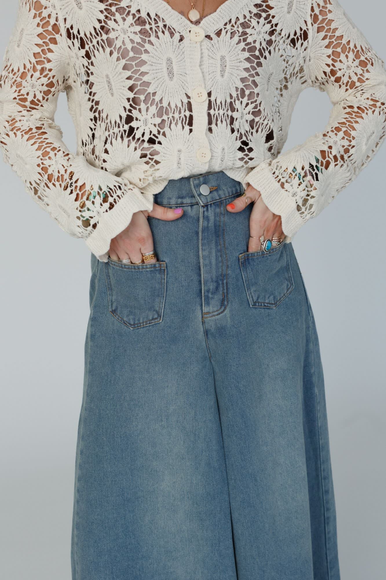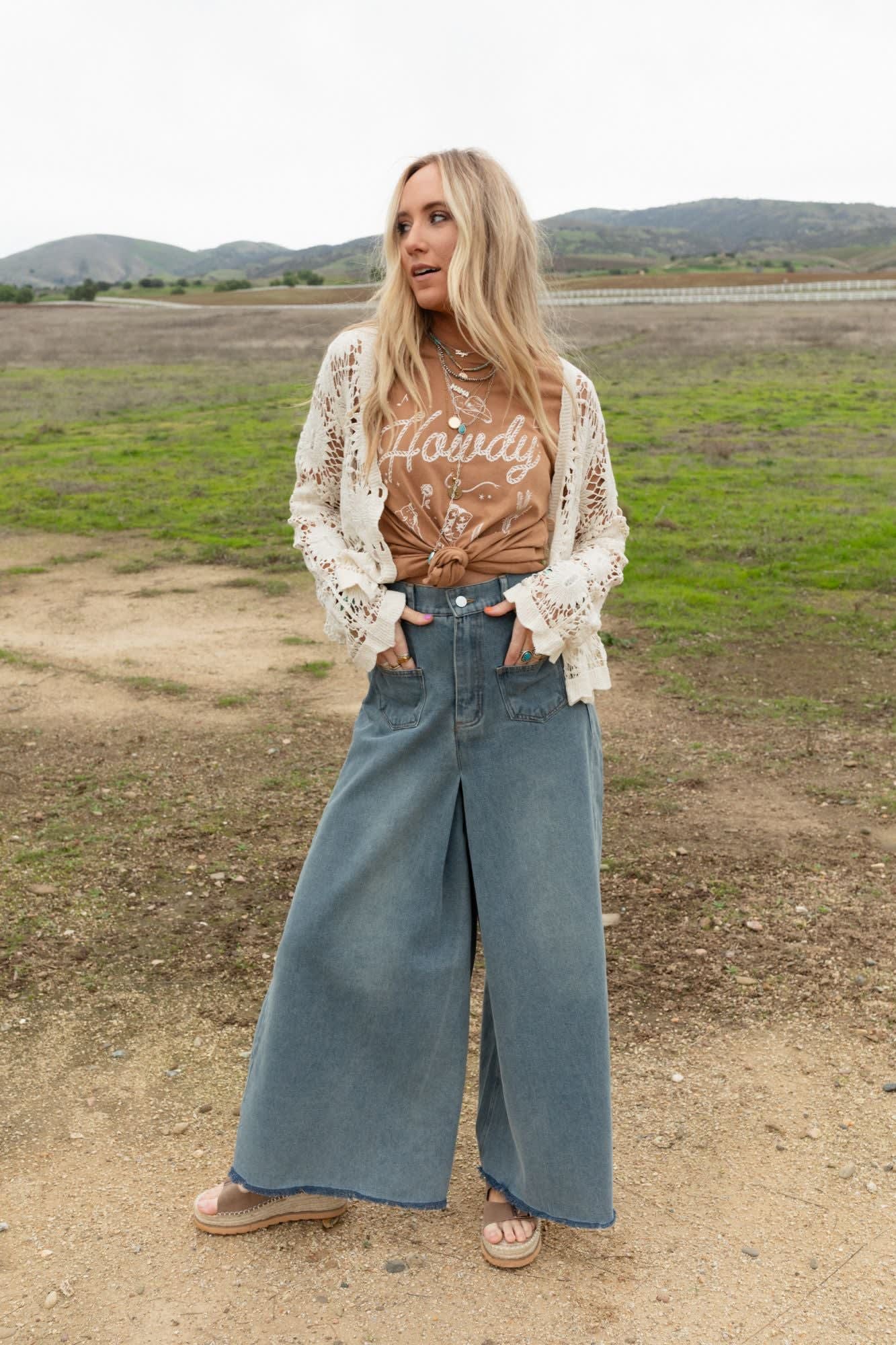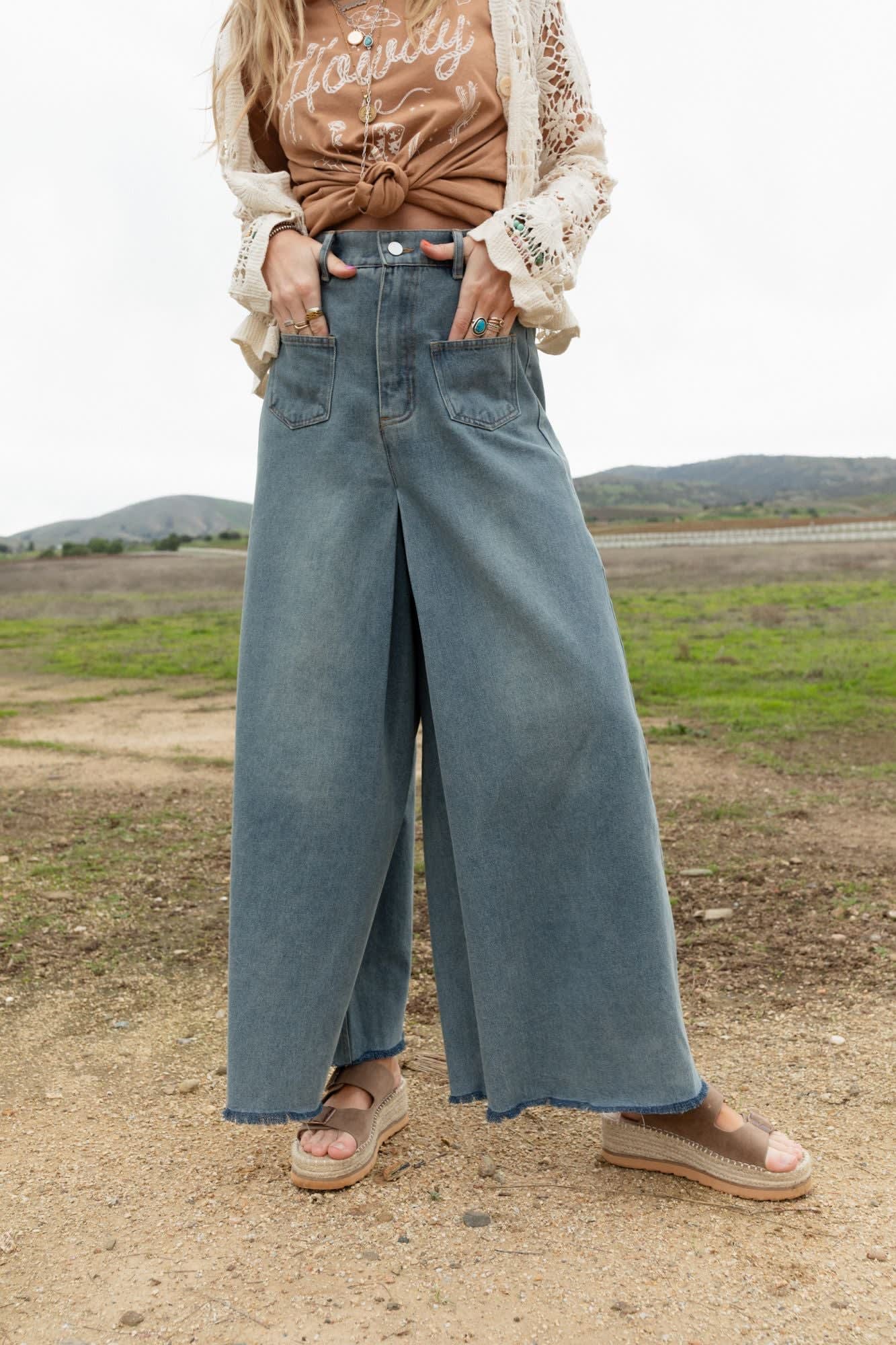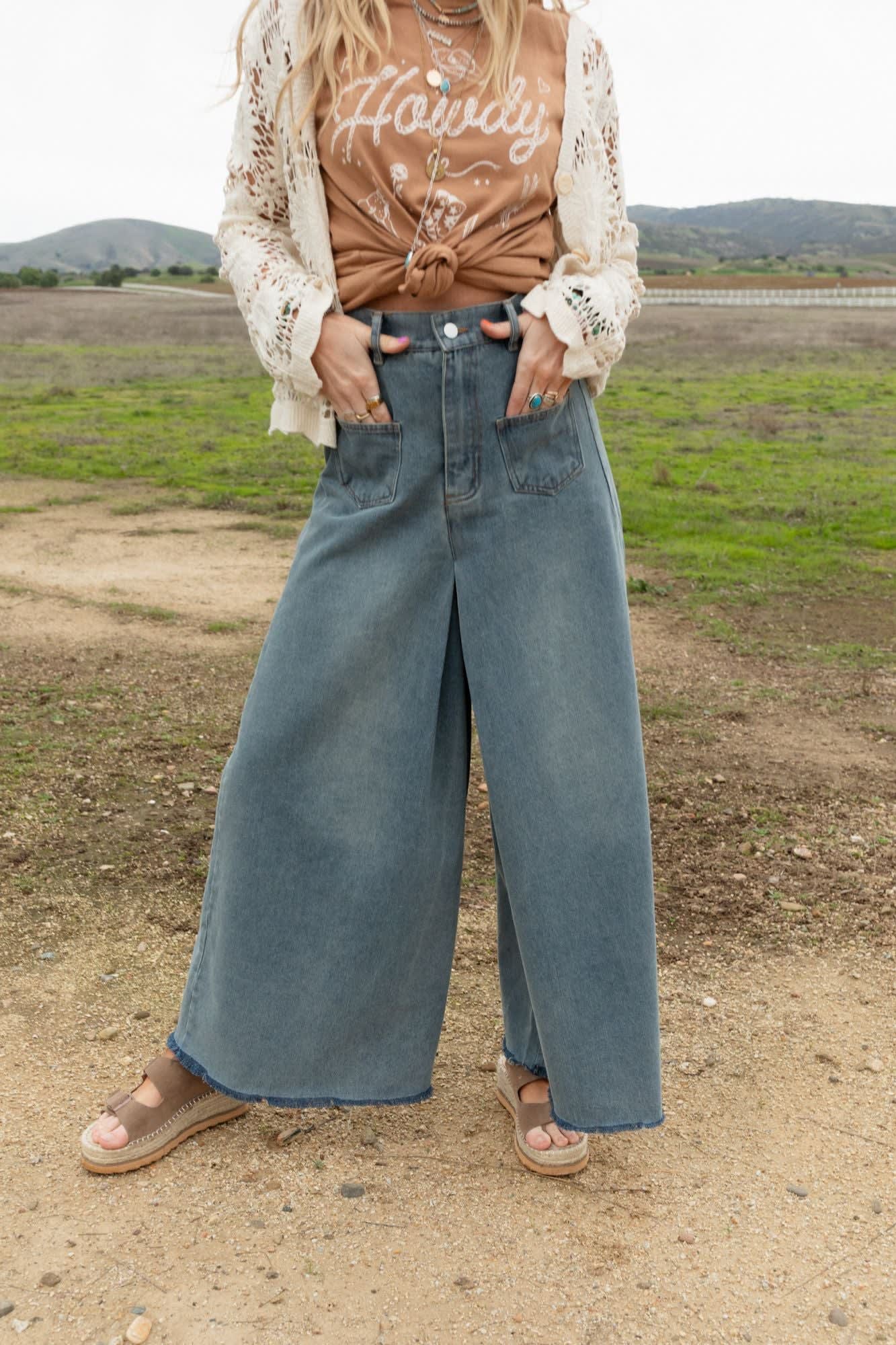 Denim dreams meet chic comfort in our Sway My Way Super Wide Leg Pant, these jeans effortlessly blend style and ease!