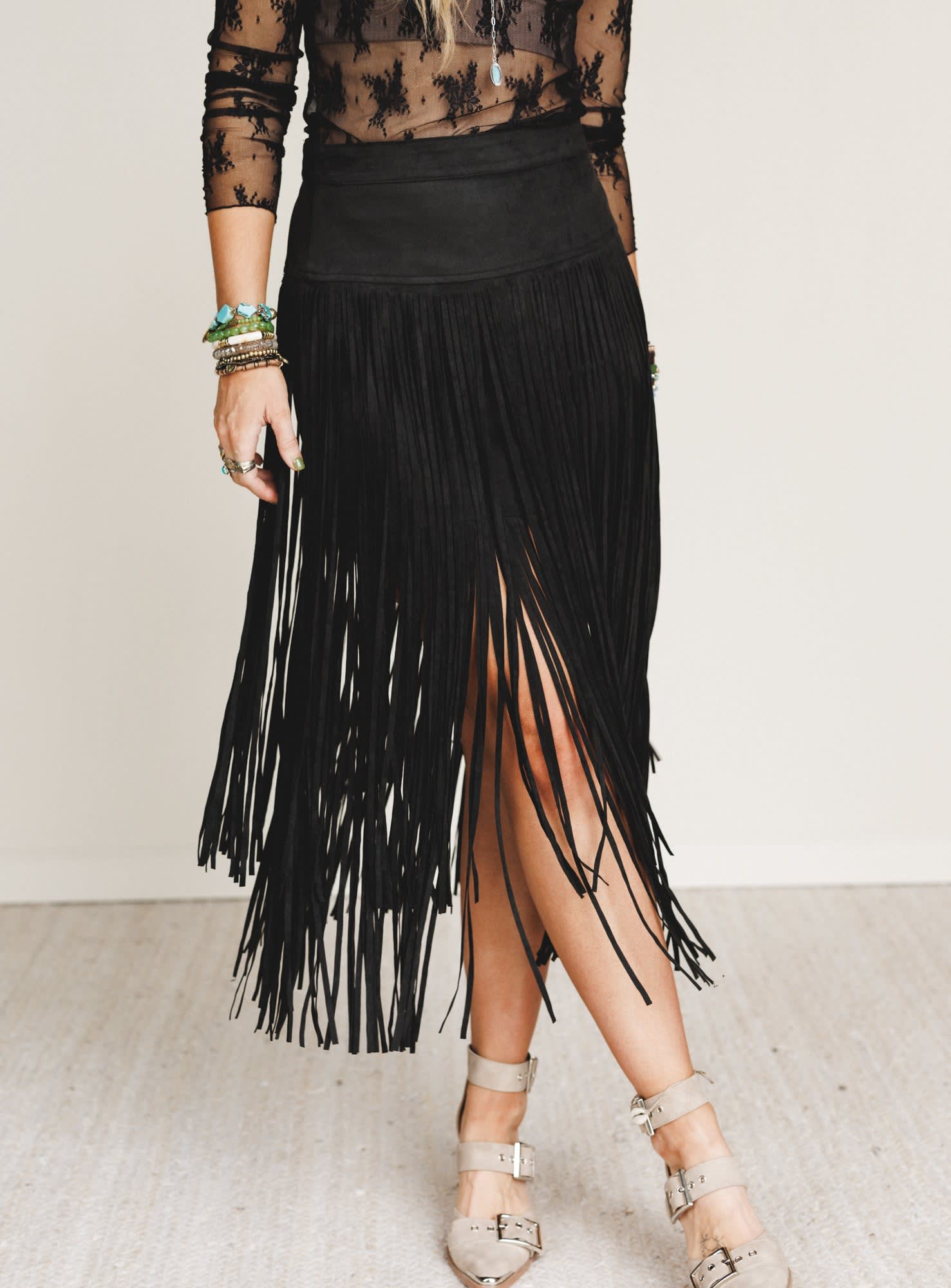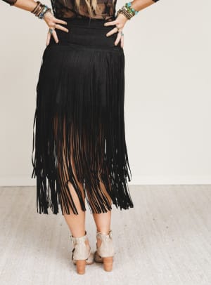 Turn every sidewalk into your personal runway with this statement-making fringe skirt. Whether you're two-stepping at a country concert or twirling under café lights, this piece brings the drama in all the right ways.