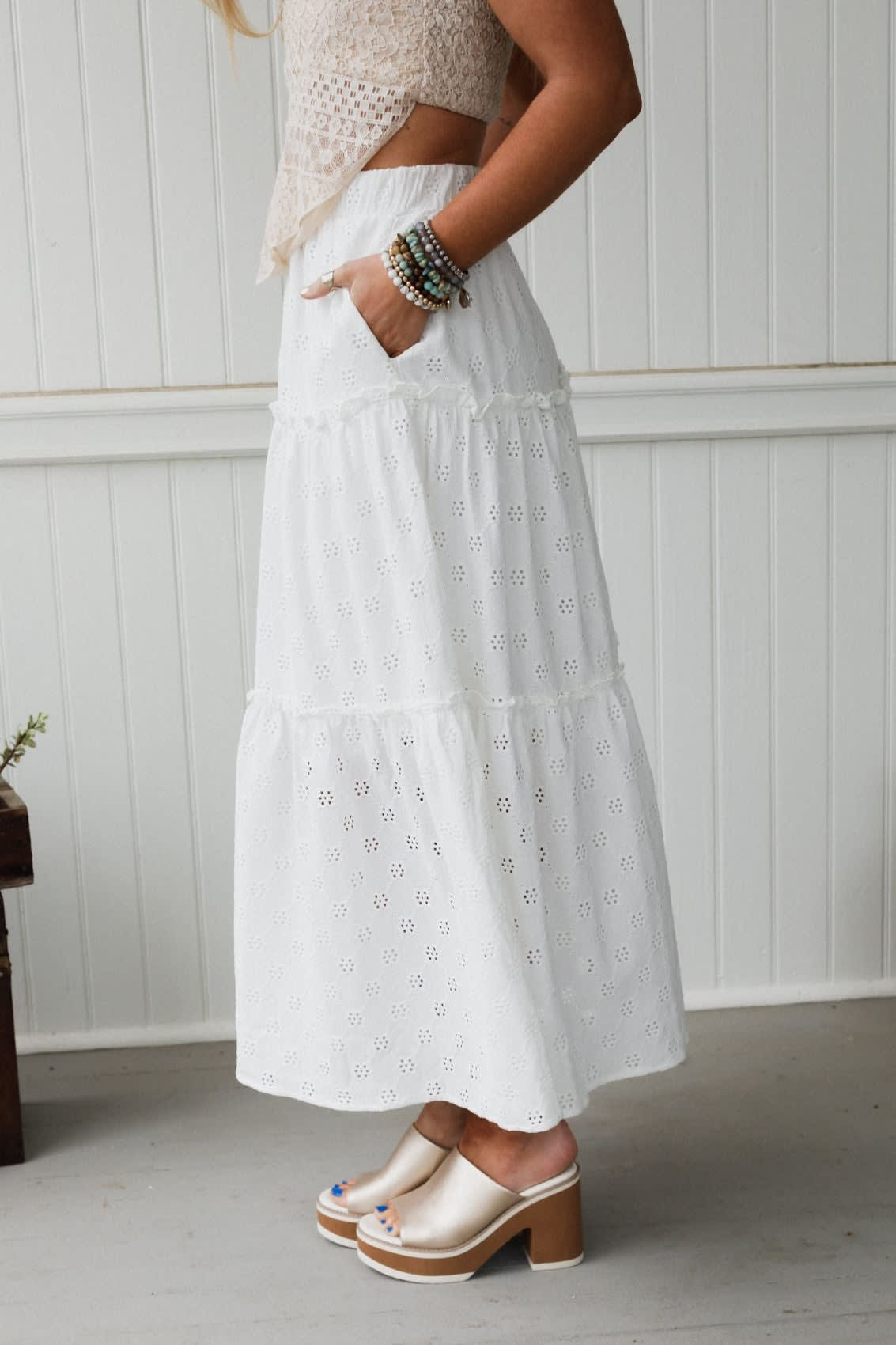 This 3 tier maxi skirt is an essential piece for your boho capsule wardrobe and goes with just about anything.