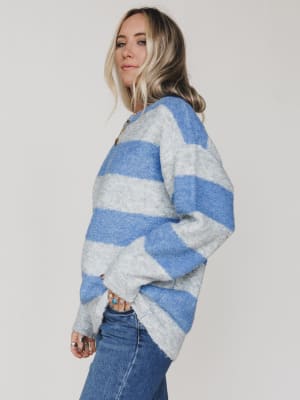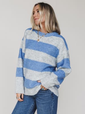 Catch cozy vibes and cotton candy dreams in the Sweet Mirage Sweater. This ultra-soft knit brings a playful twist to your everyday layers with bold, beachy stripes and a relaxed, laid-back fit.