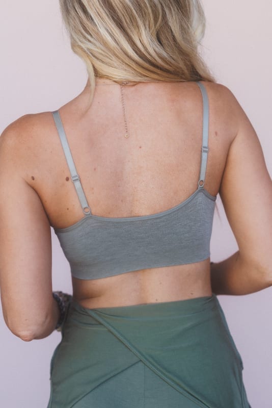 This lace bralette layers perfectly with scoop neck tops and jersey overalls.