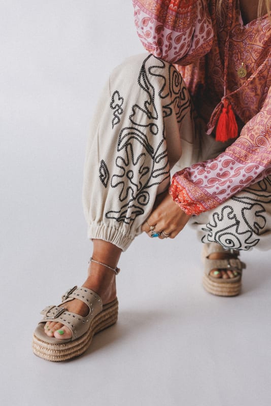 Pair these unique boho jogger pants with a graphic tee and boots for a laid-back look.