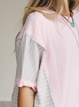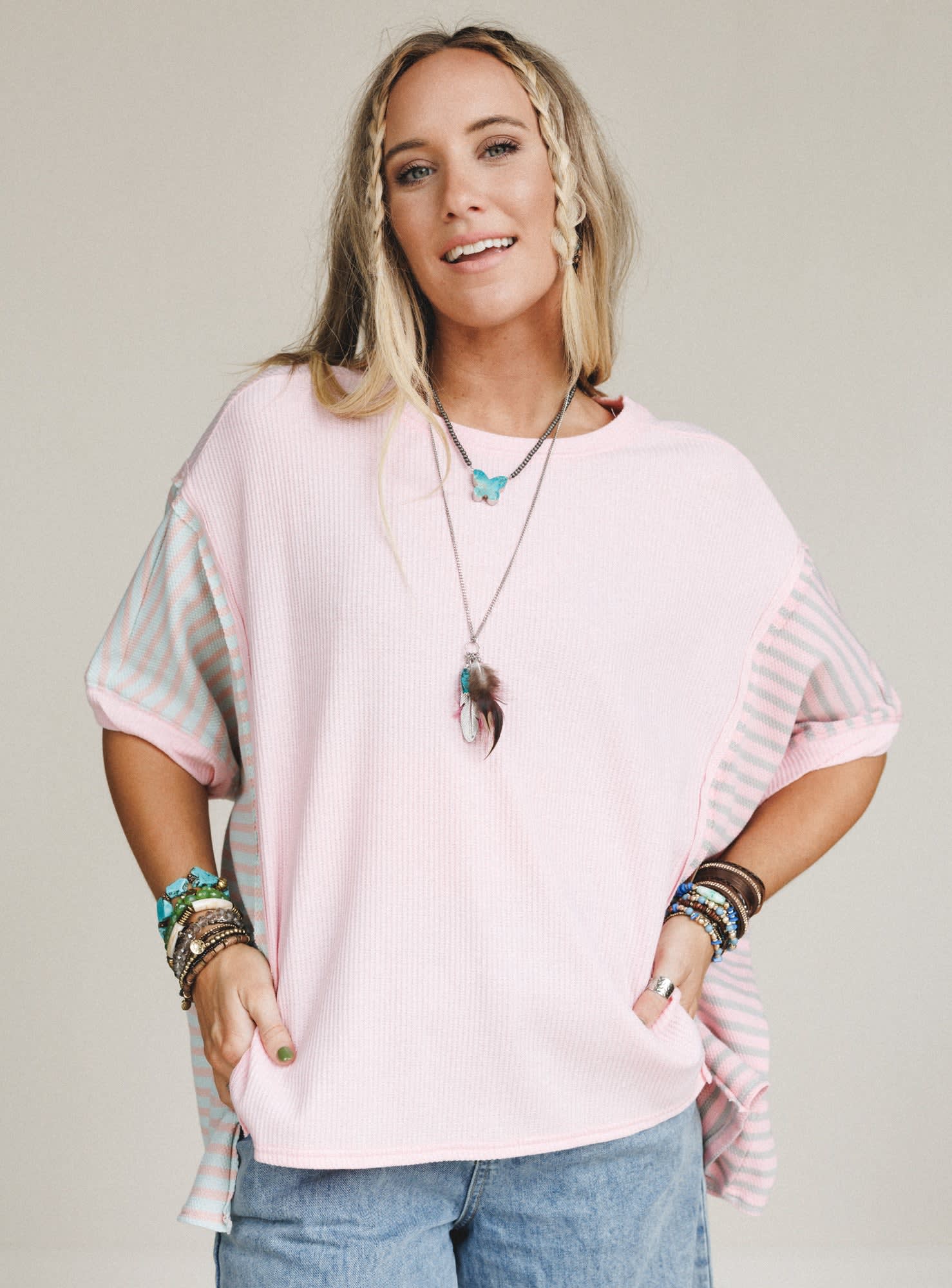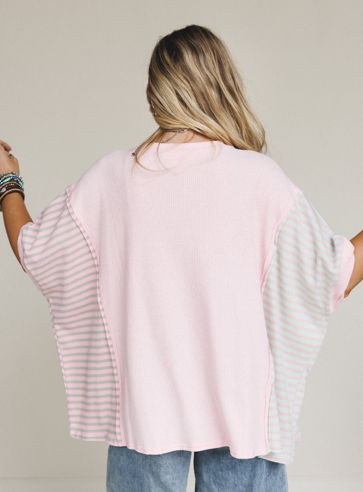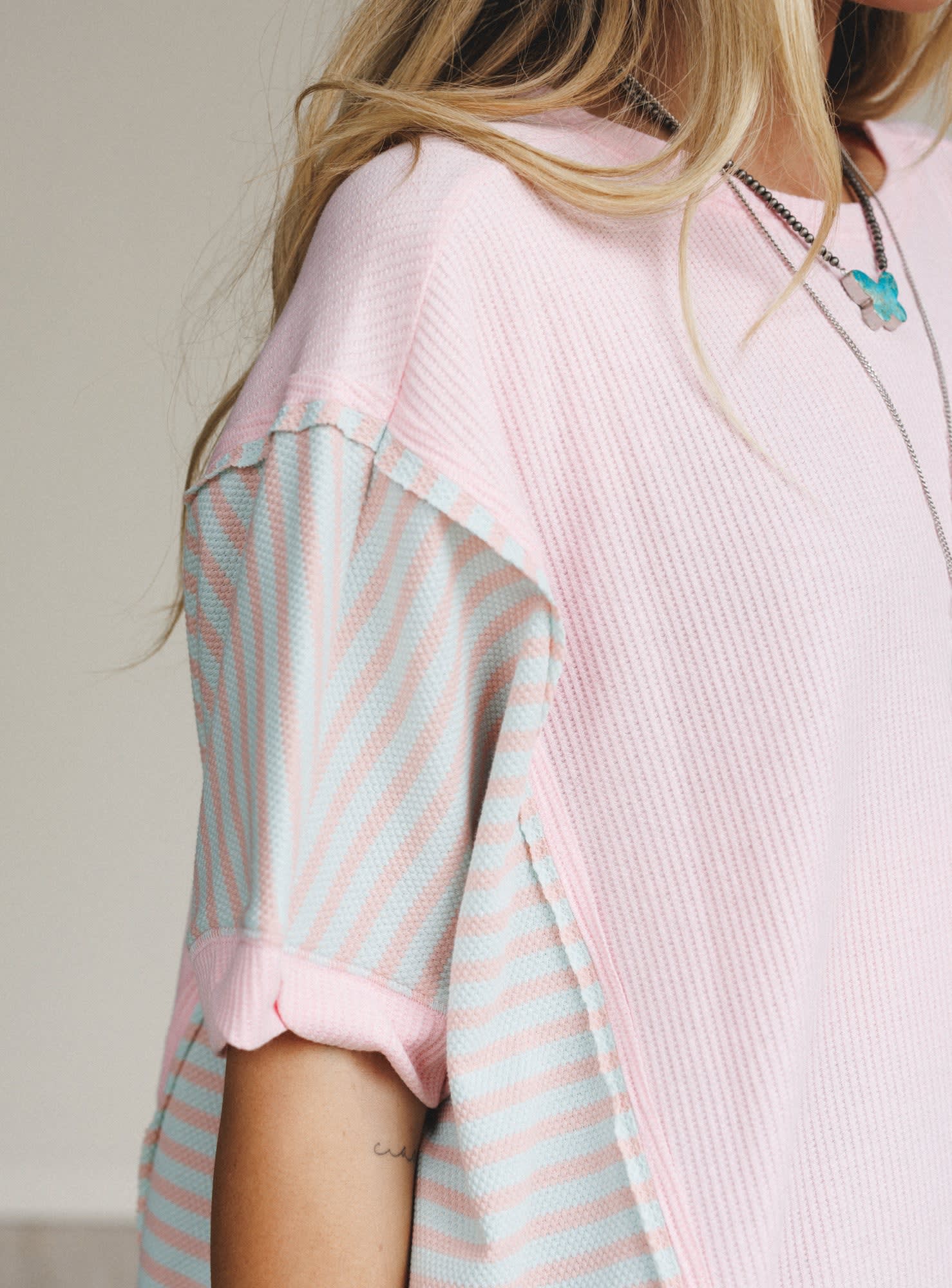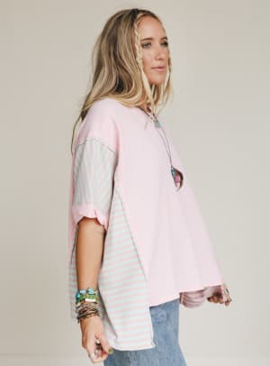 Playful pastels and easygoing comfort come together in this soft, oversized tee. The Sweet Stripes Top is made for days when you want to look cute with zero effort—just throw it on and go chase the sun.
