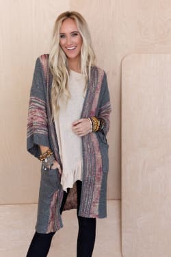 3/4 bell sleeve boho knit sweater cardigan with oversized pockets. Multi color with ultra soft relaxed silhouette. Open front. Relaxed fit.