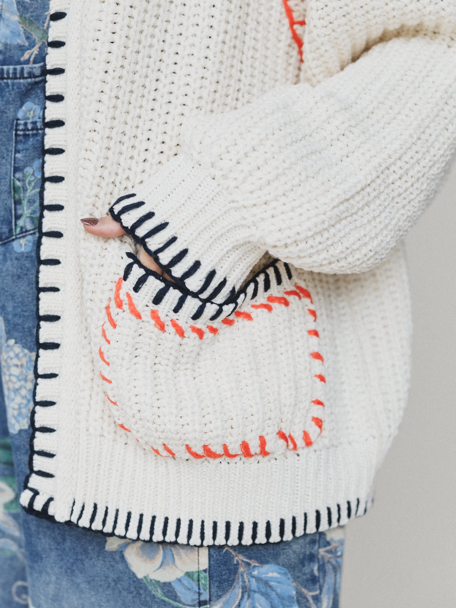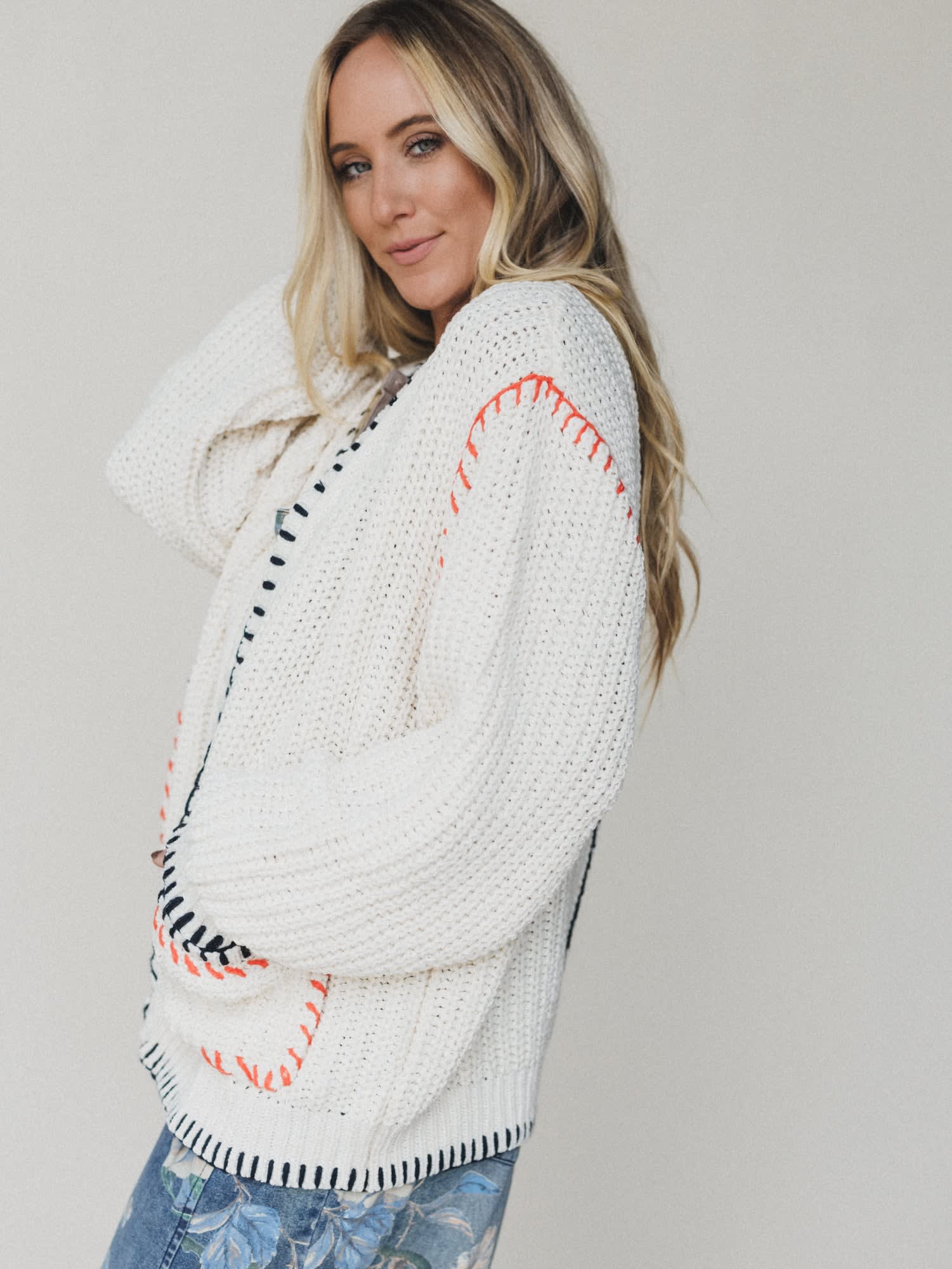 Equal parts cozy and cool, the Switched And Stylish Open Cardigan brings playful details to a classic knit. With chunky contrast stitching and a relaxed shape, it’s the kind of throw-on-and-go piece that still turns heads.
