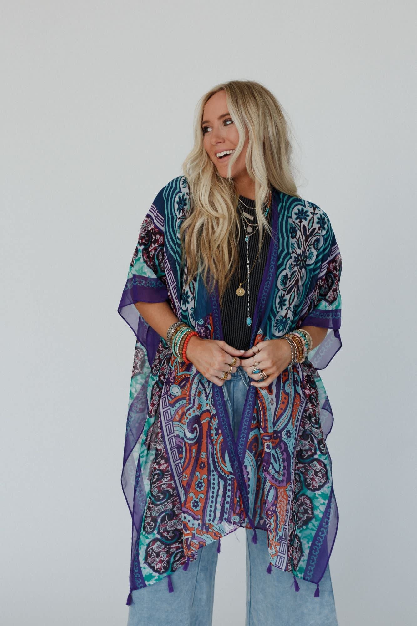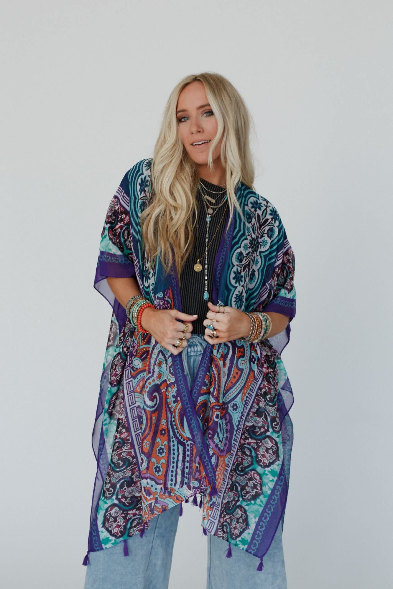 You'll add a stunning addition to your boho wardrobe with our Tabitha Floral Kimono, sure to become a cherished piece in your collection, adding a touch of bohemian glamour to every occasion!