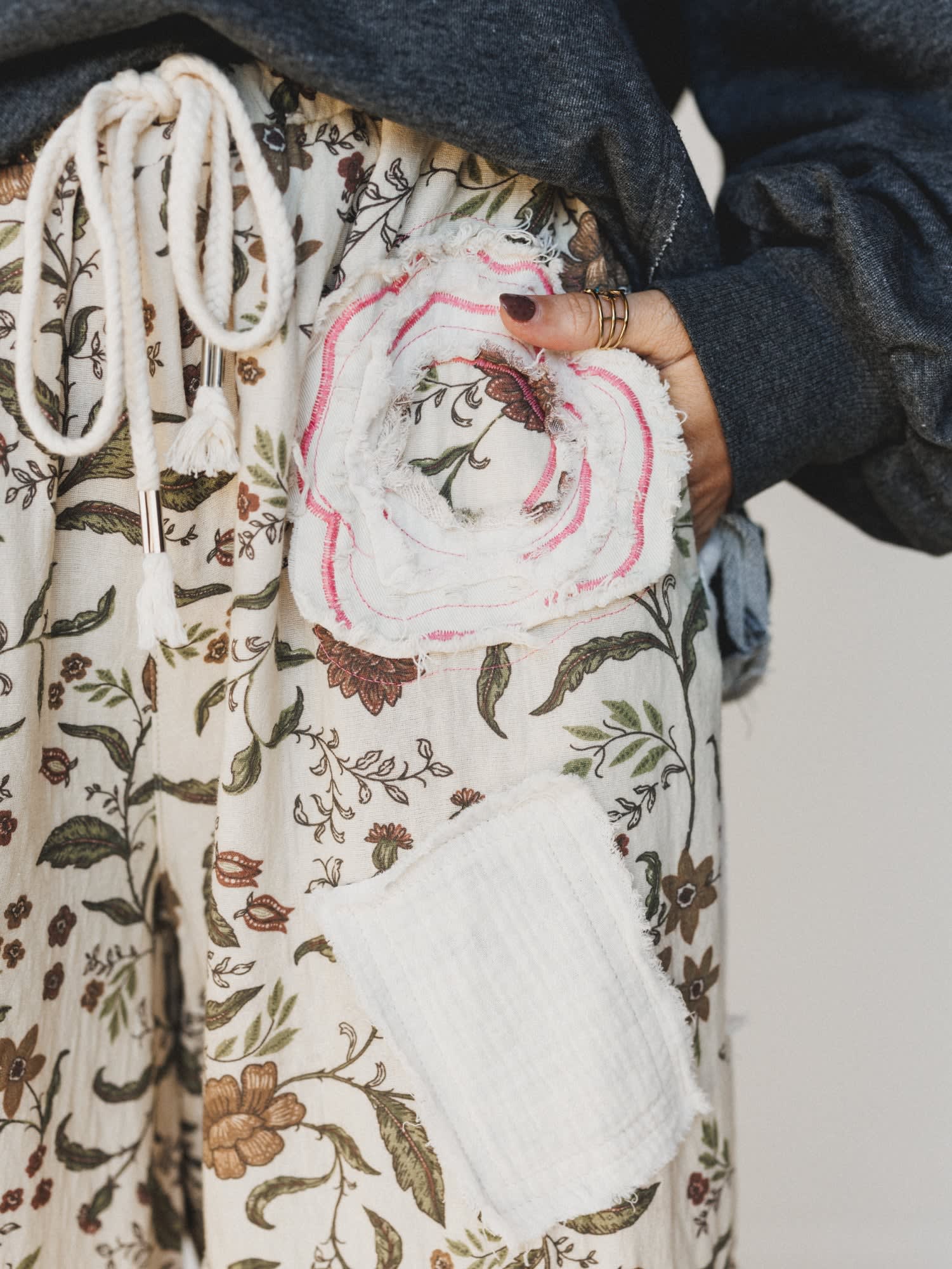 Soft, romantic, and oh-so-whimsical, the Tea Time In Spring Pants are what happens when vintage florals meet playful boho charm. With their cottagecore energy and dreamy details, these pants are ready for everything from farmers market mornings to barefoot backyard lounging.