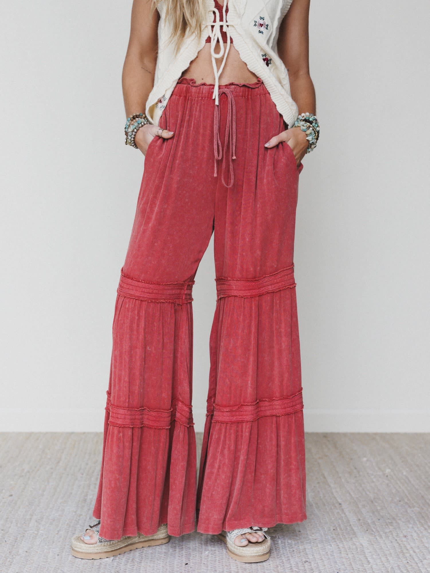 Turn up the volume on your everyday style. The Beat Goes On Pants bring that effortless boho energy with a flowy, tiered silhouette and perfectly lived-in wash. Bold yet easy to wear, they’re made for dancing through your day.