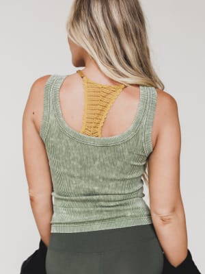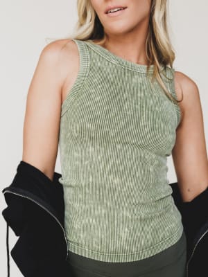 Easy to love, effortless to style — The Haven Tank is that everyday go-to you’ll keep reaching for. With its dreamy olive tone and curve-hugging ribbed fit, it’s made to move with you from sunrise yoga to sunset hangs.