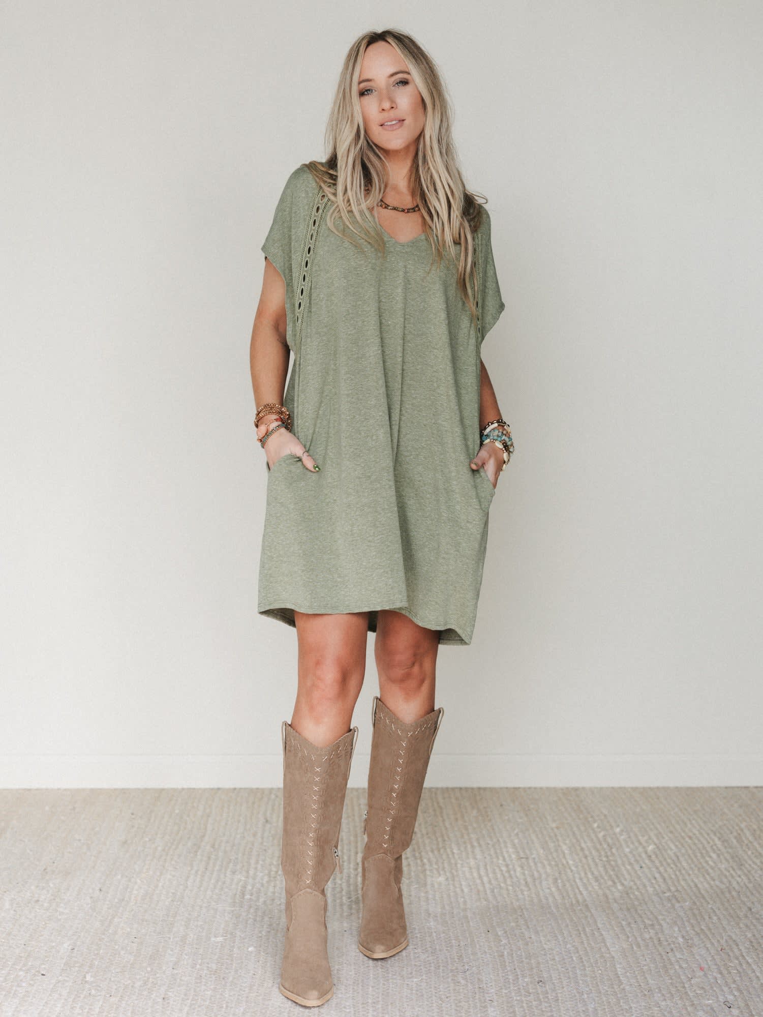 Soft olive knit fabric gives this dress a lightweight, breathable feel for all-day comfort.