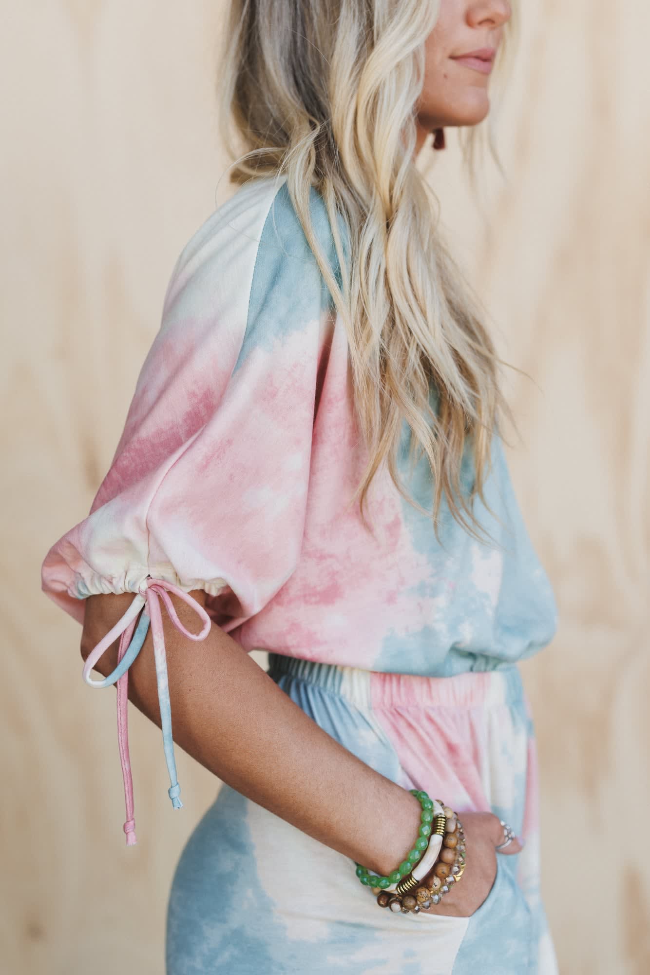 - Elbow-length Dolman puff sleeves with so cute functional drawstring closure details
