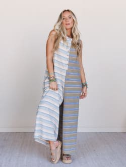 Set sail in comfort and color with The Nest Cruise Lines Jumpsuit. Breezy, bold, and full of laid-back charm, this sleeveless stunner is made for barefoot days, coastal getaways, and every moment in between.