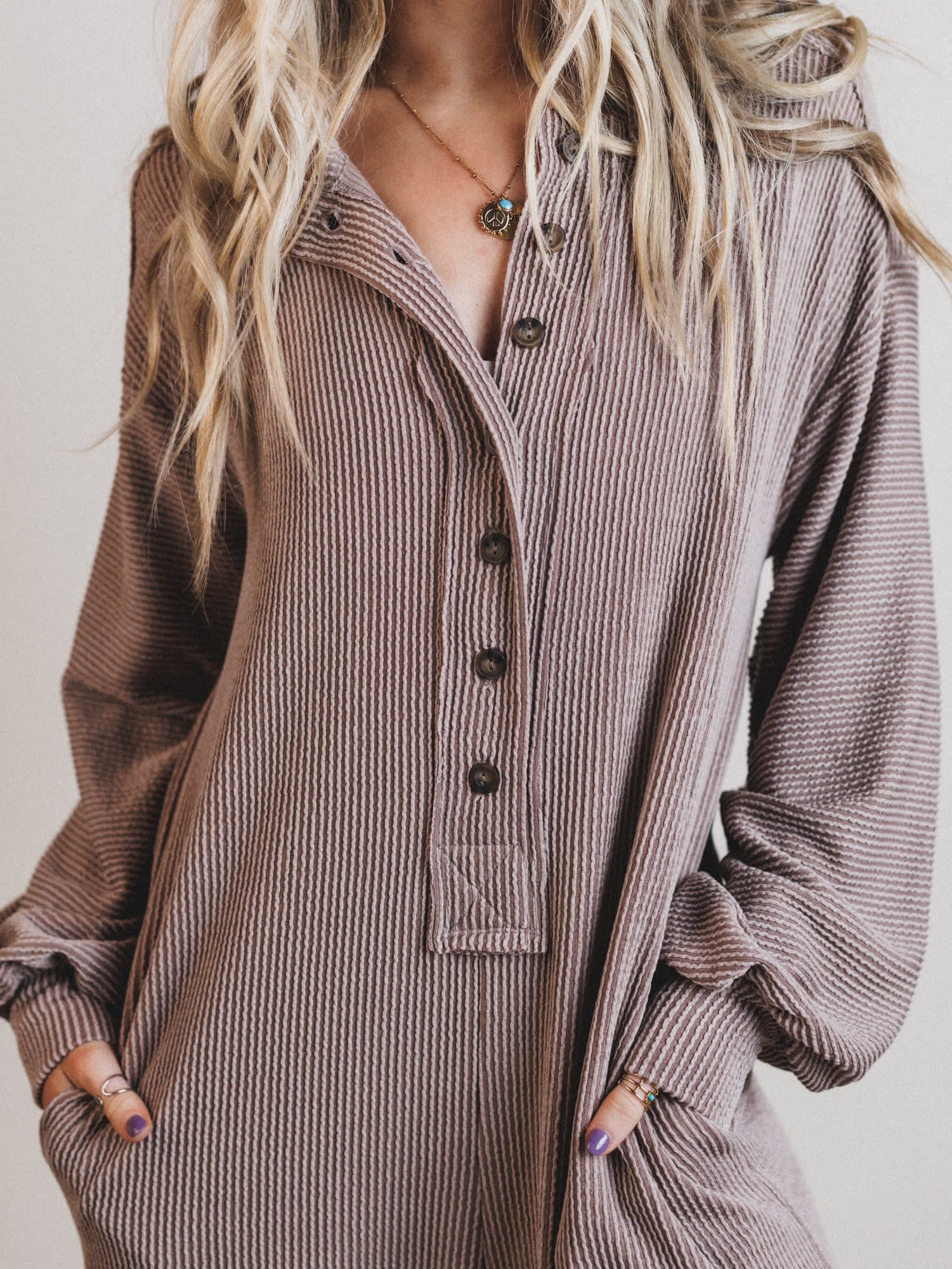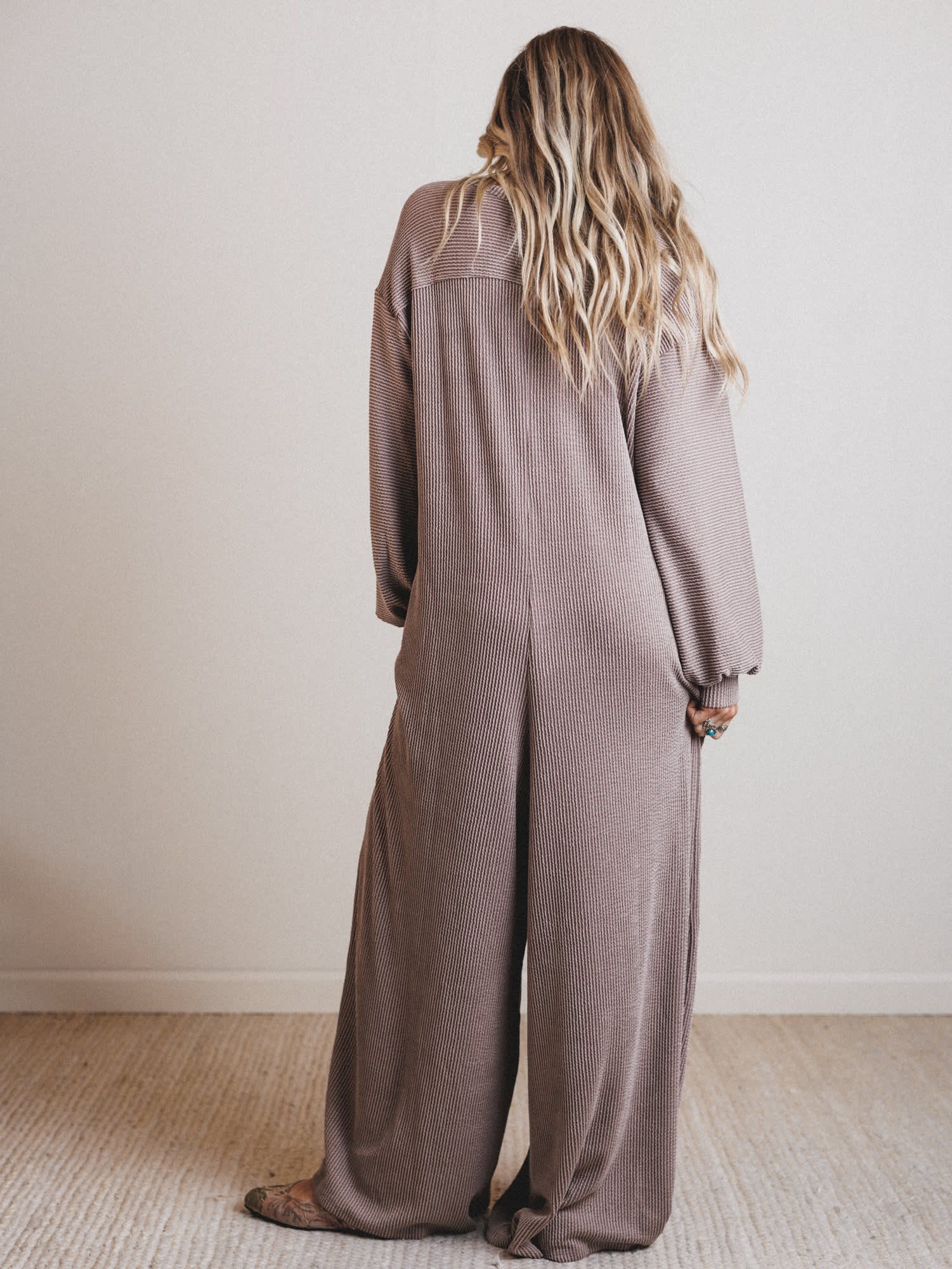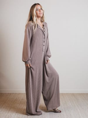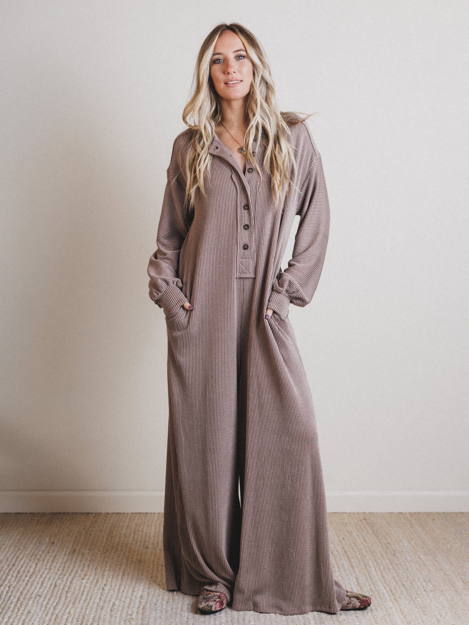 Slip into something that feels like a hug with The Nest Daphne Textured Jumpsuit. This wide-leg one-piece is your cozy-day dream, featuring soft thermal texture and laid-back structure that’s perfect for lounging, traveling, or styling up for a casual coffee date.