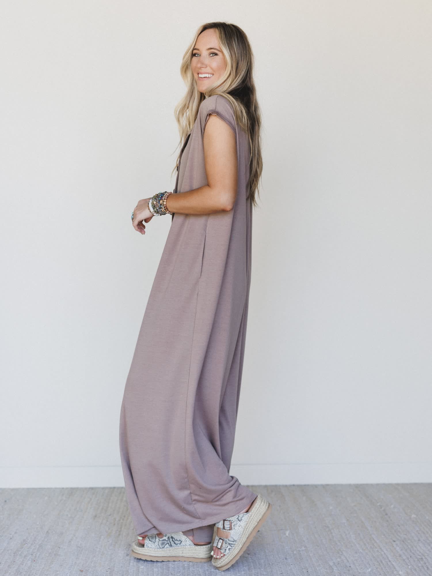 • Side pockets hit at just the right spot — functional, deep, and always a welcome surprise in a jumpsuit.